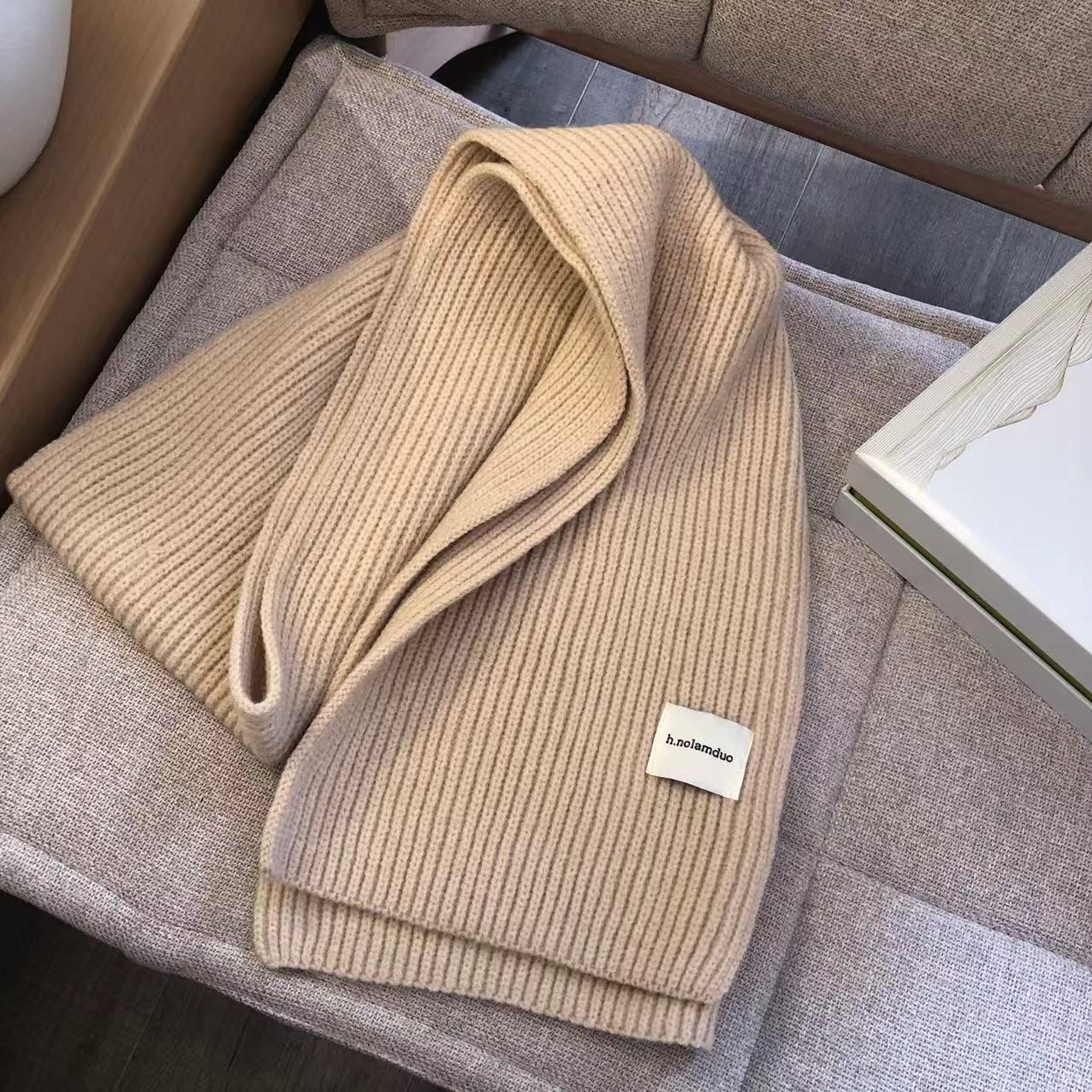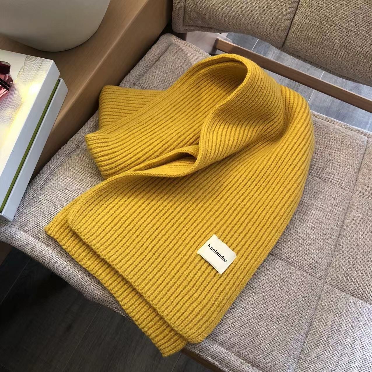 솔리드 컬러 니트 스카프 여성 가을 겨울 한국 스타일 학생 울 올매치 따뜻한 두꺼운 스카프 커플 트렌디 한 남성 커플스토어 가기