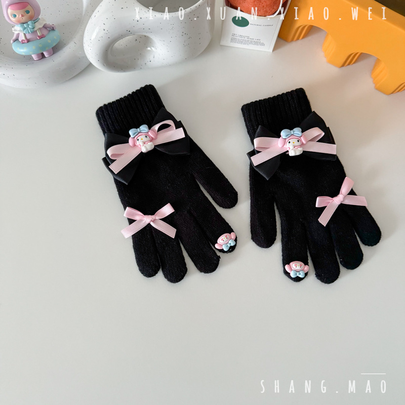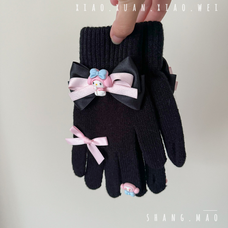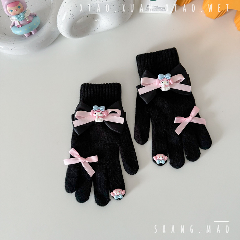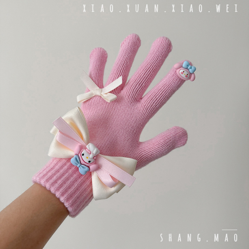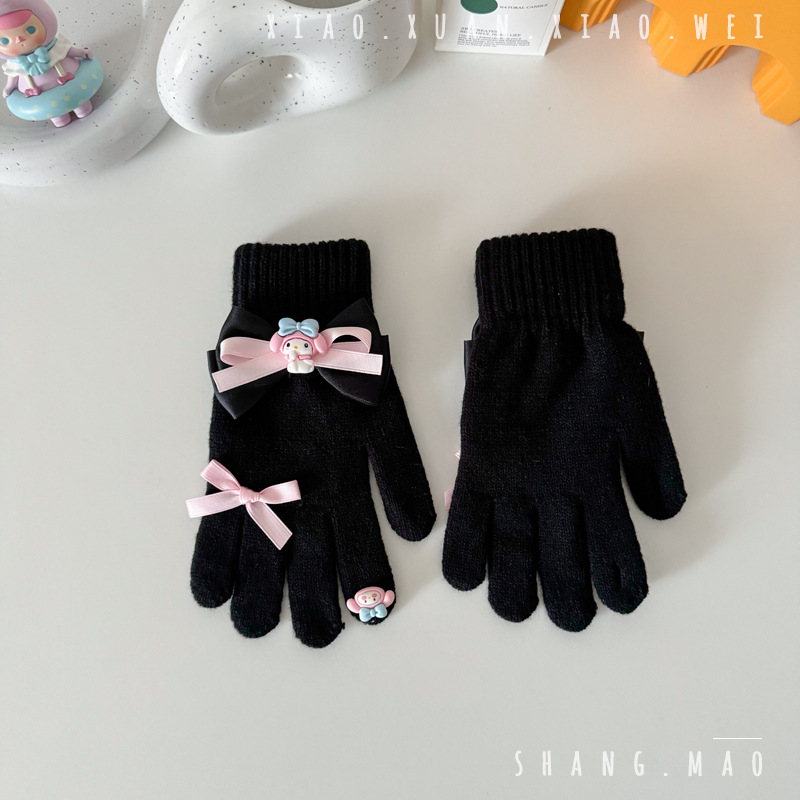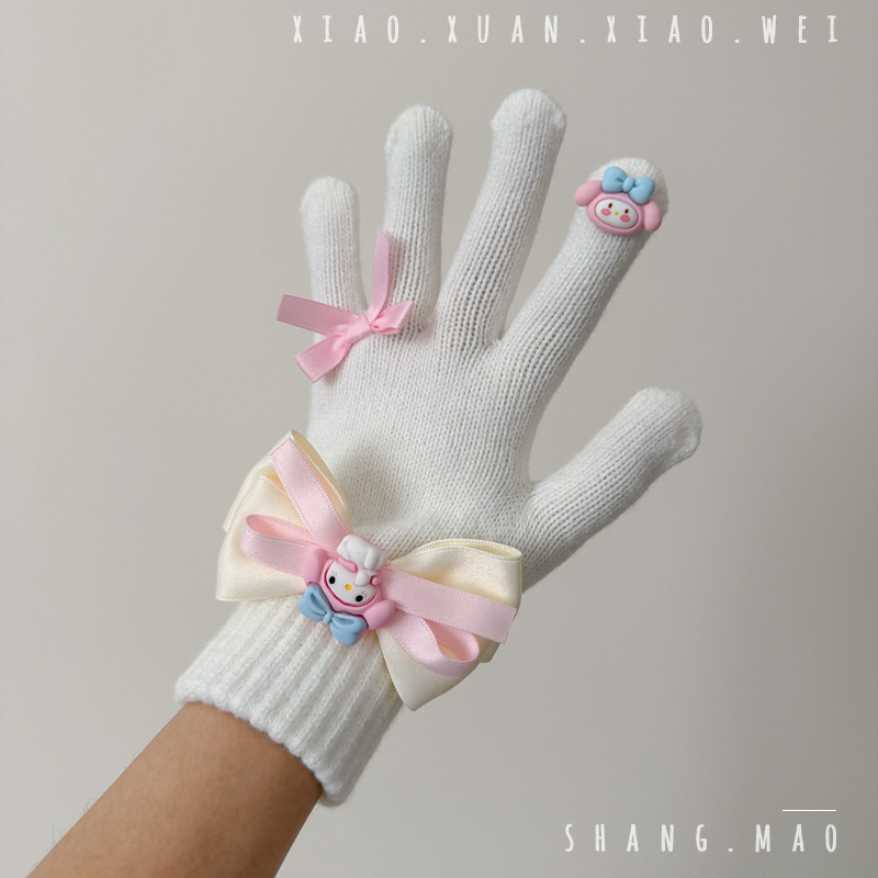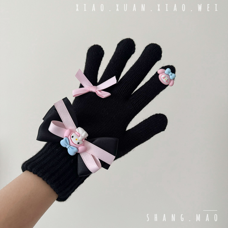 Leaky Finger 장갑 여성의 귀여운 만화 Merleti 가을과 겨울 따뜻한 양털 스플릿 핑거 달콤한 소녀 활 장갑스토어 가기