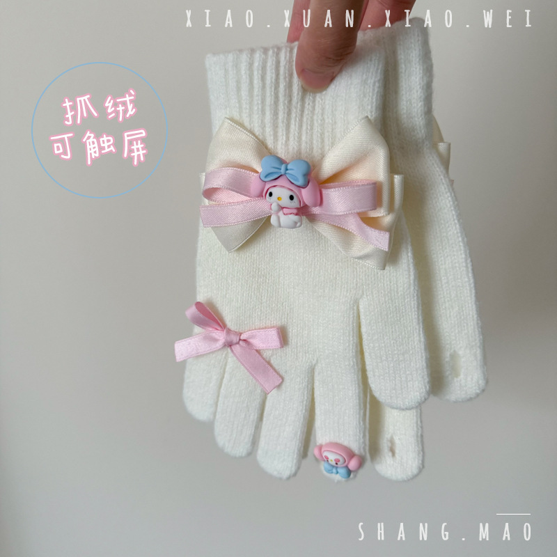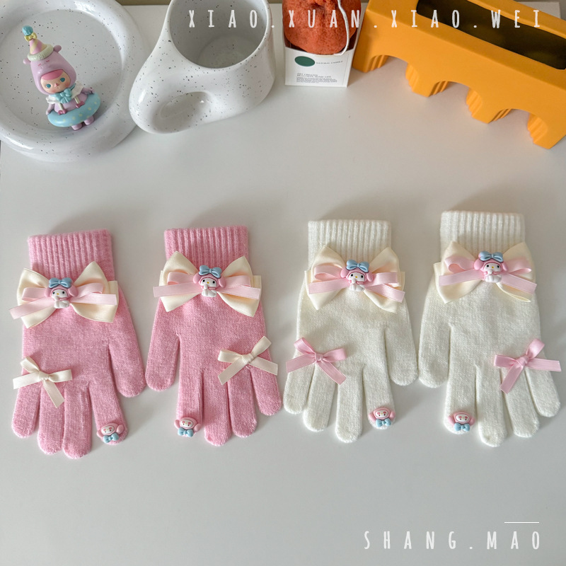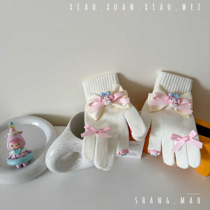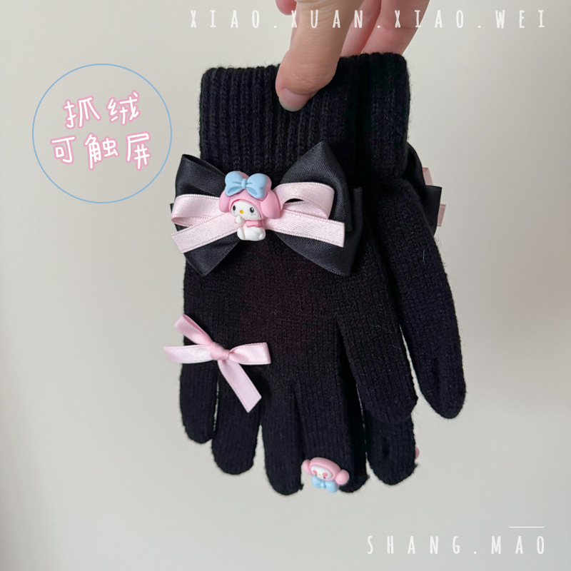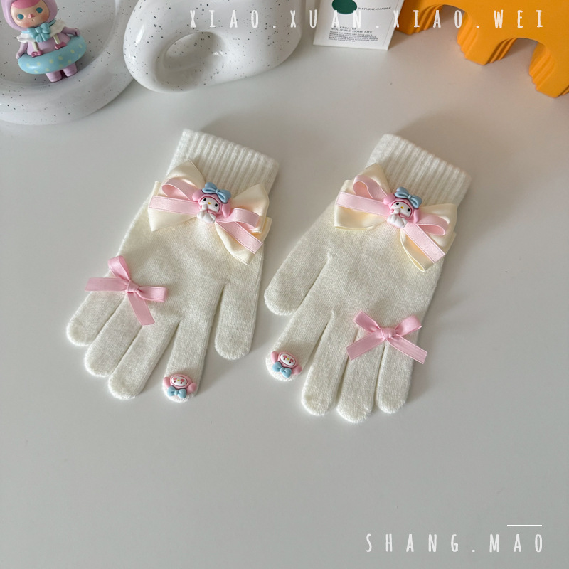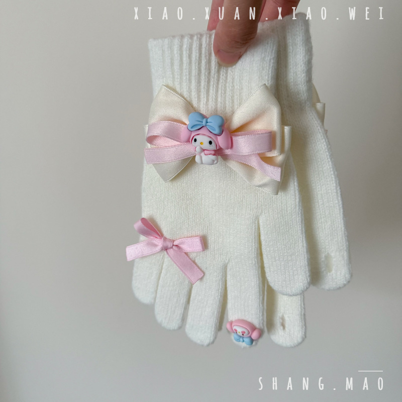 Leaky Finger 장갑 여성의 귀여운 만화 Merleti 가을과 겨울 따뜻한 양털 스플릿 핑거 달콤한 소녀 활 장갑스토어 가기