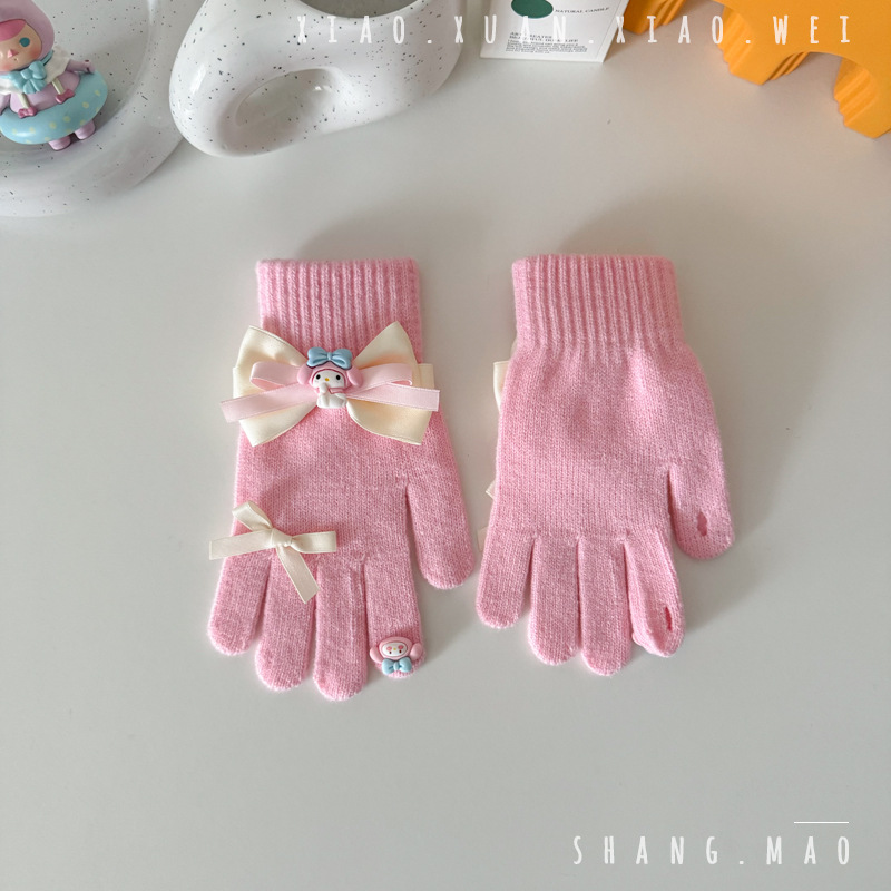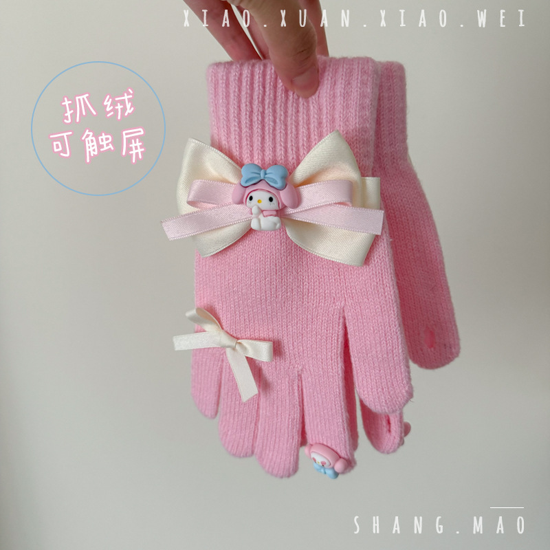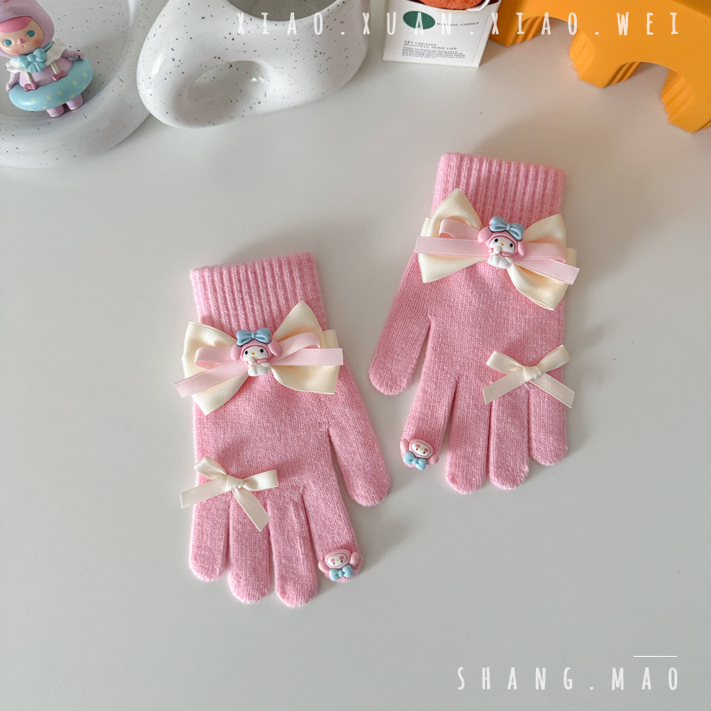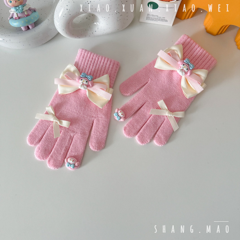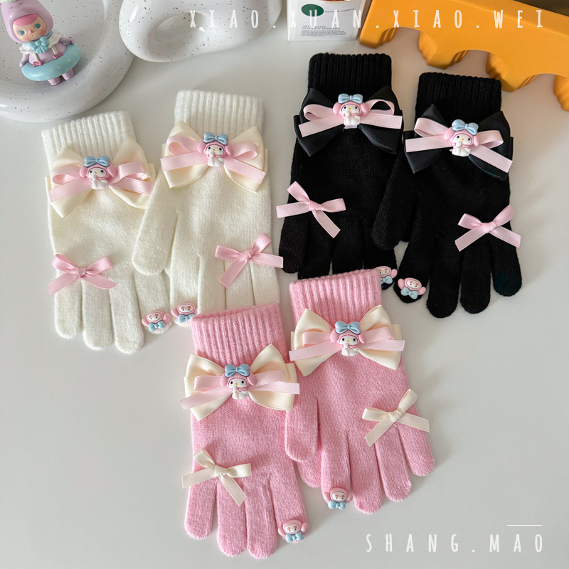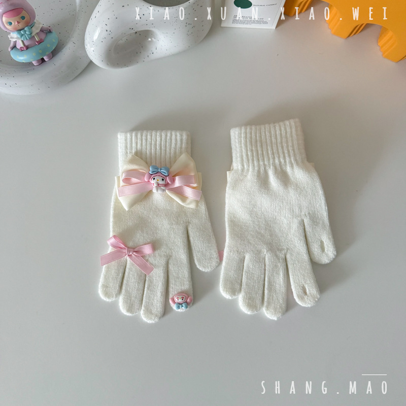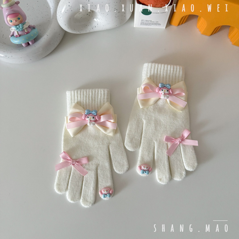 Leaky Finger 장갑 여성의 귀여운 만화 Merleti 가을과 겨울 따뜻한 양털 스플릿 핑거 달콤한 소녀 활 장갑스토어 가기