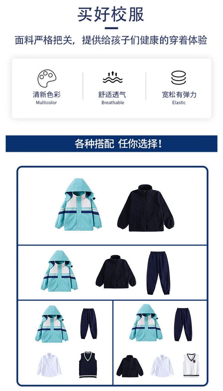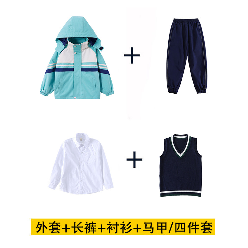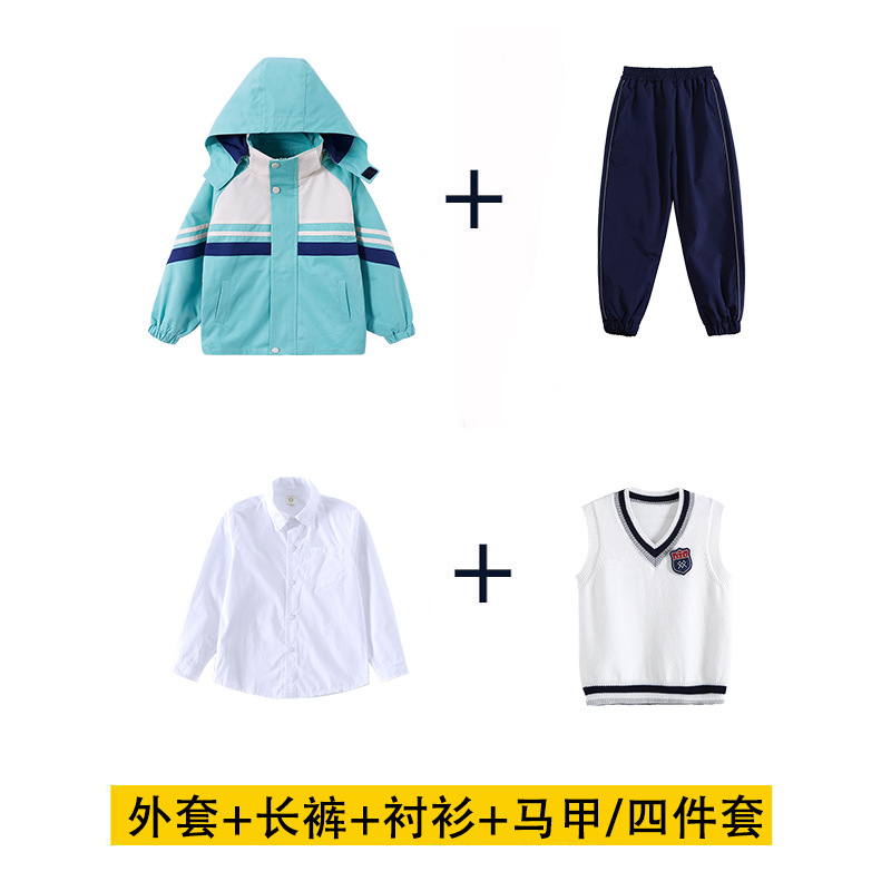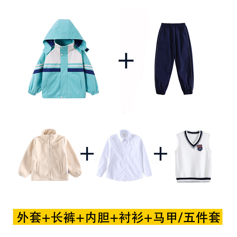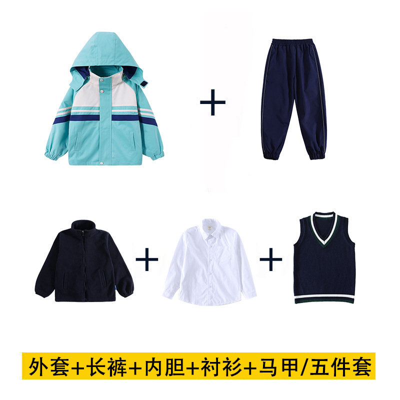 어린이 및 초등학교 학생 학교 유니폼 세트 가을 및 겨울 수업 옷 두꺼운 따뜻한 재킷 분리 가능한 3 조각 유치원 옷스토어 가기