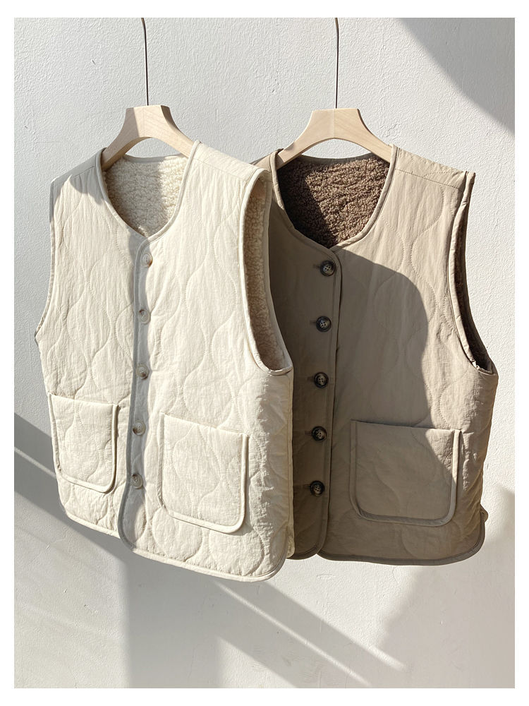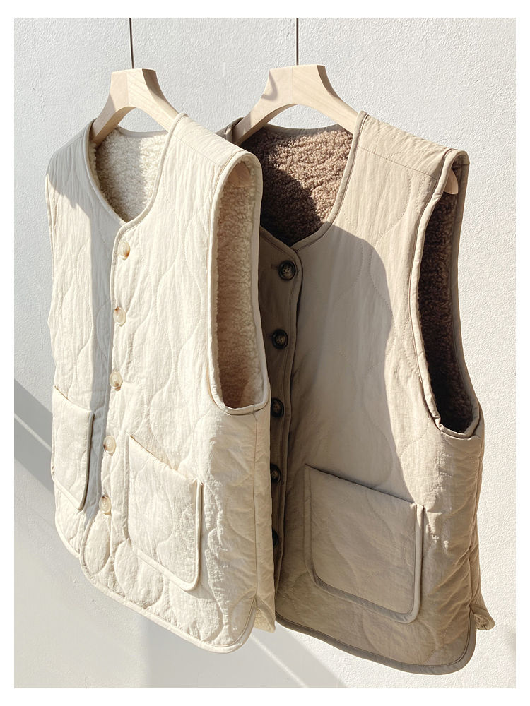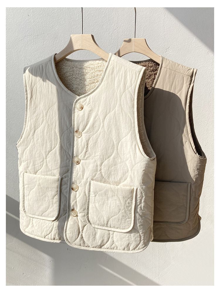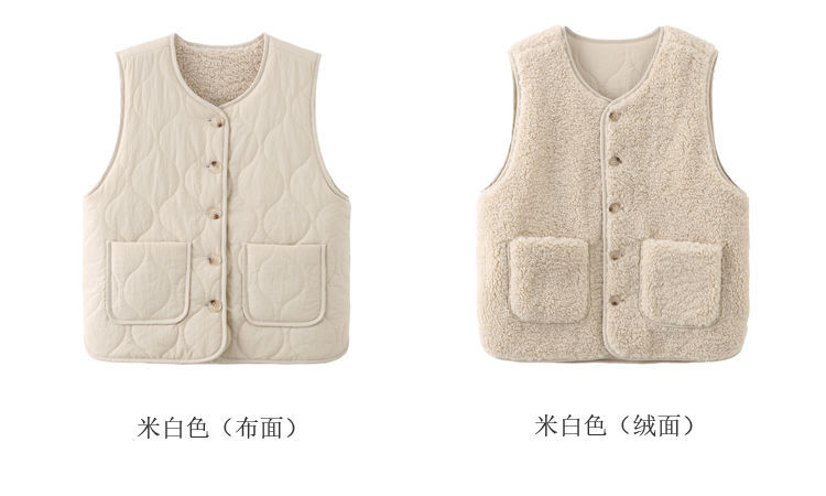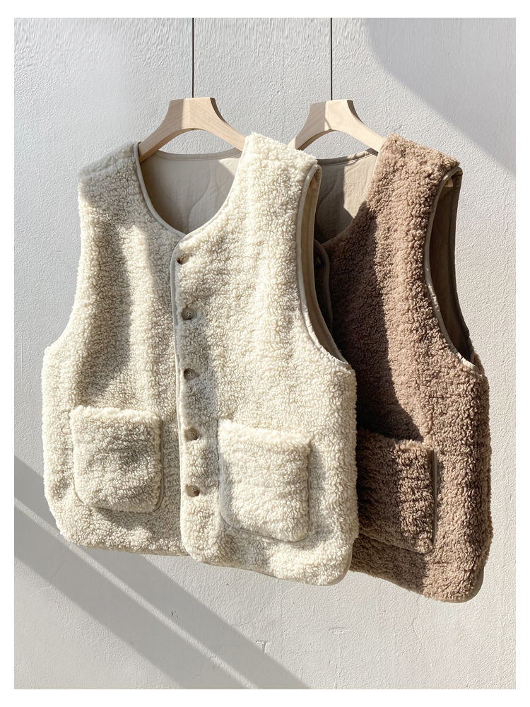 2024 새로운 양면 양고기 착용 양모 다운 코튼 조끼 여성 가을 및 겨울 예술적 느슨한 민소매 외투