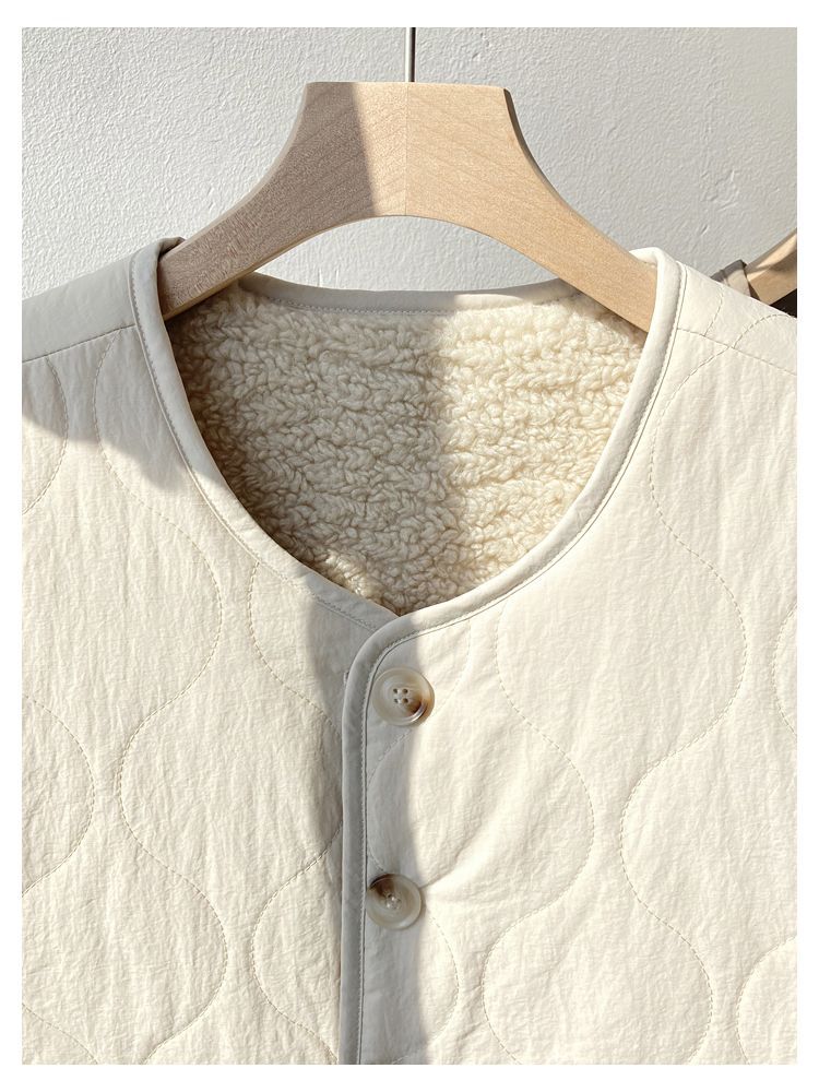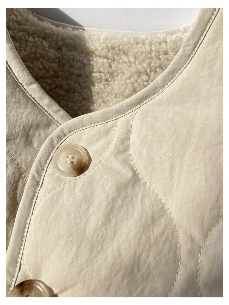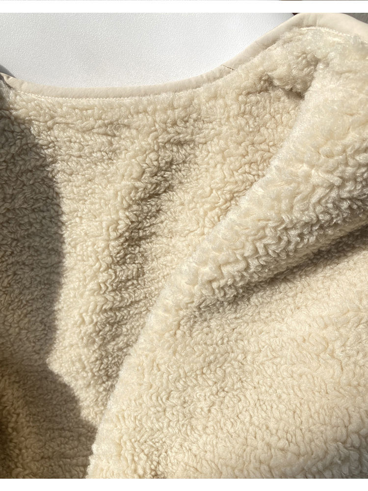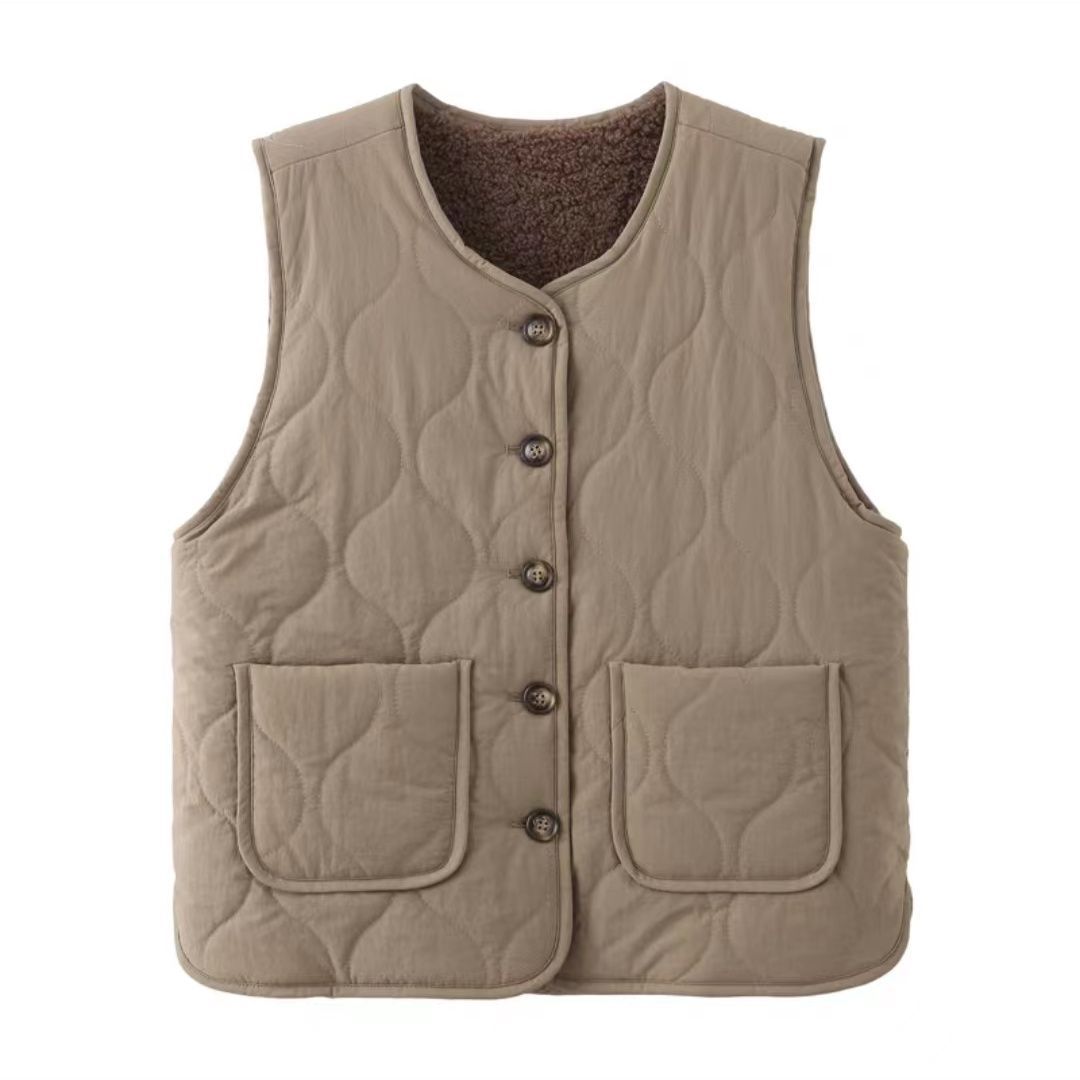 2024 새로운 양면 양고기 착용 양모 다운 코튼 조끼 여성 가을 및 겨울 예술적 느슨한 민소매 외투