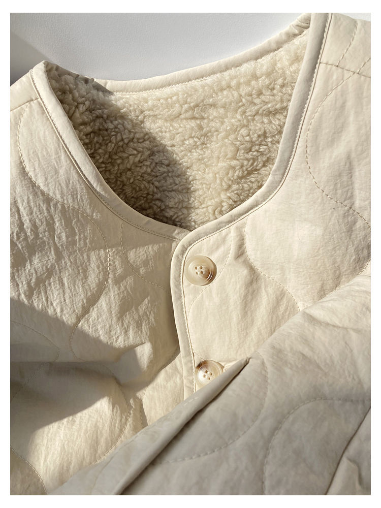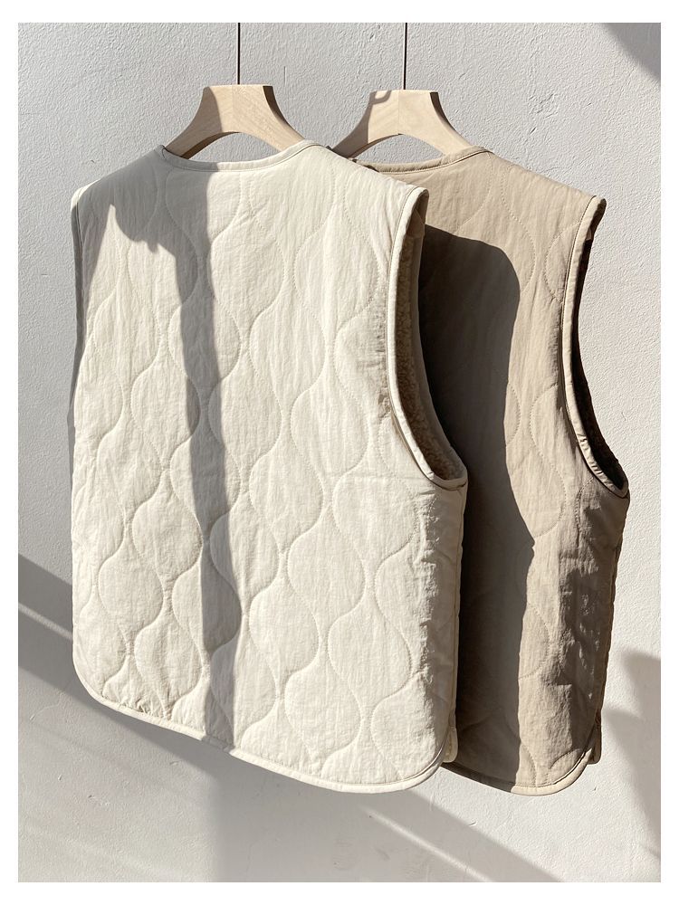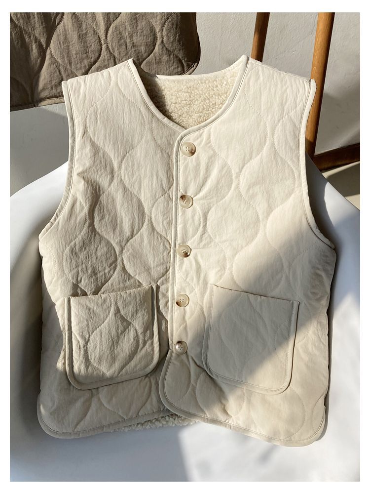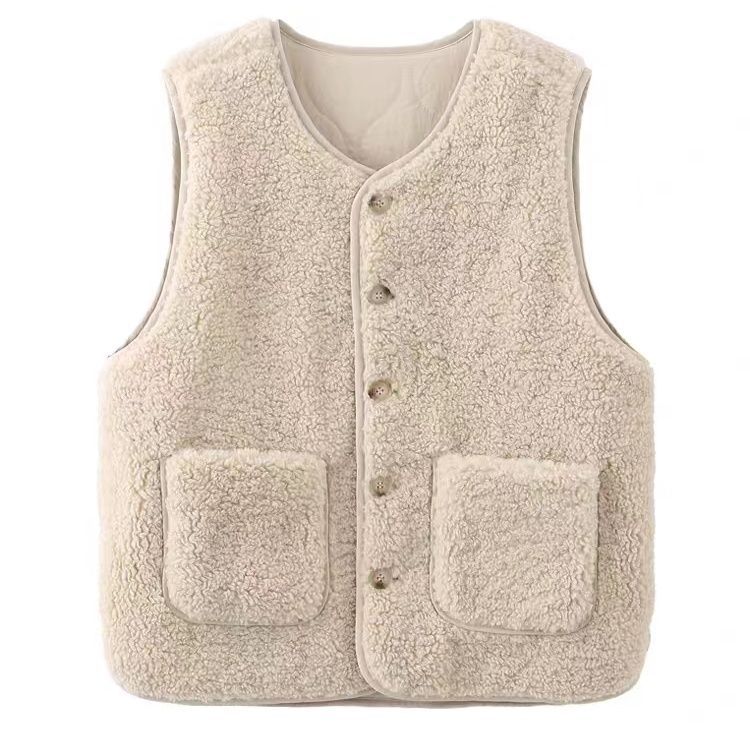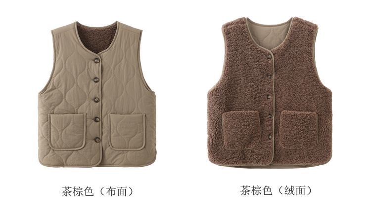 2024 새로운 양면 양고기 착용 양모 다운 코튼 조끼 여성 가을 및 겨울 예술적 느슨한 민소매 외투스토어 가기