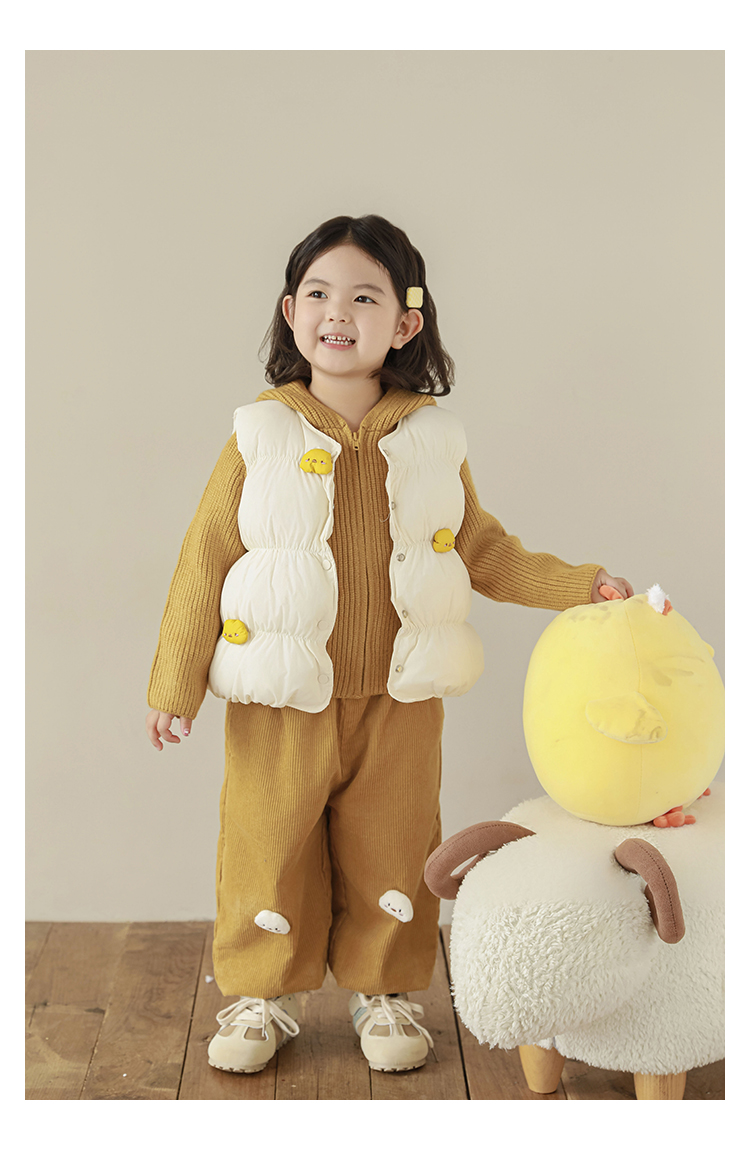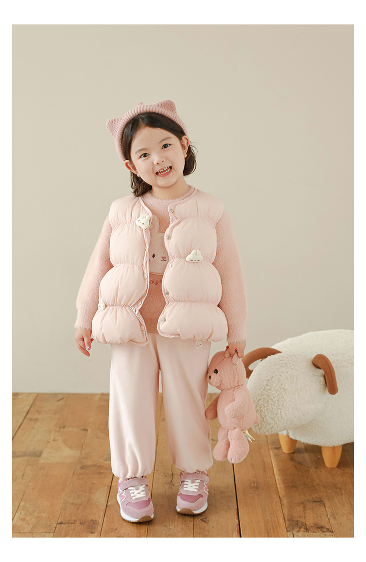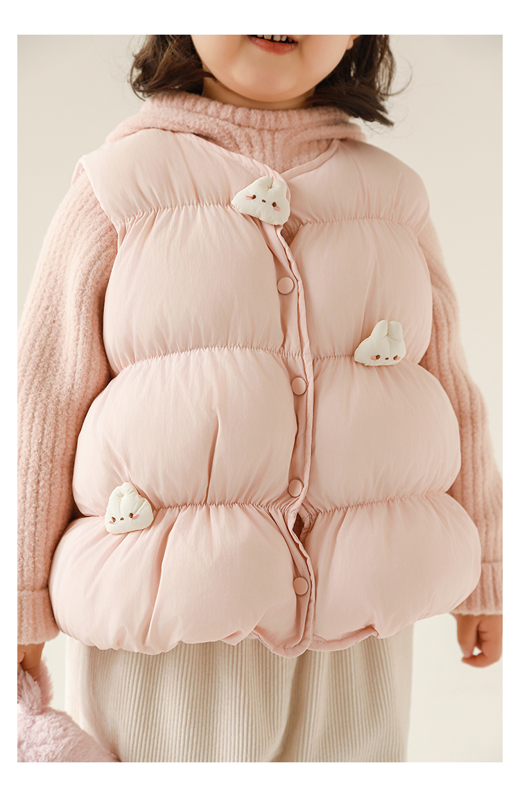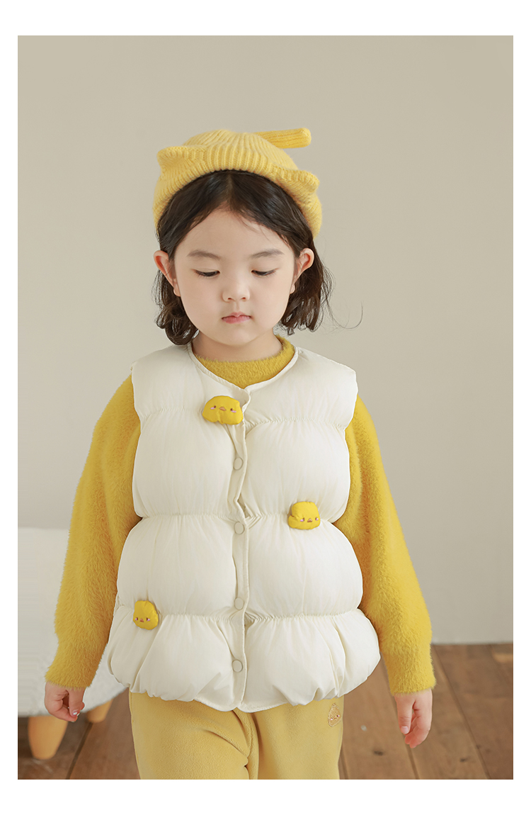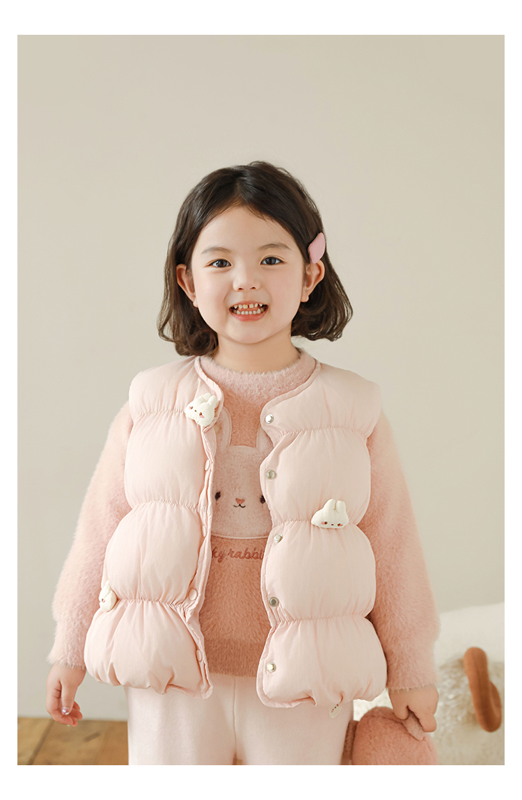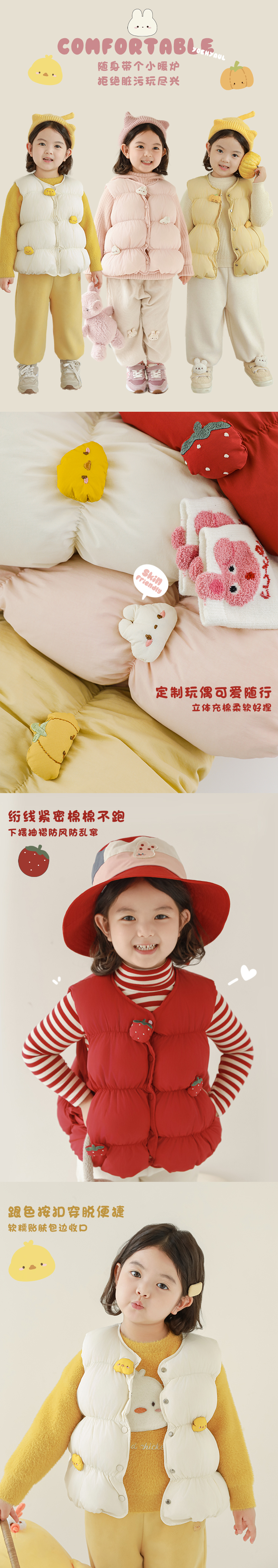 우리부이 여아용 면조끼 2025 겨울 어린이용 귀여운 인형 방풍 보온 조끼