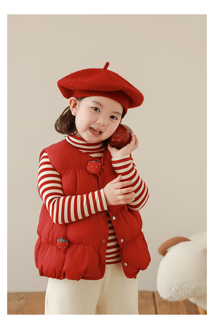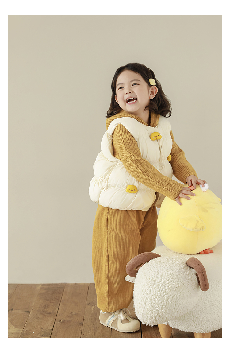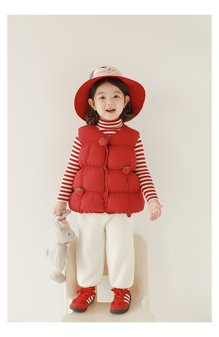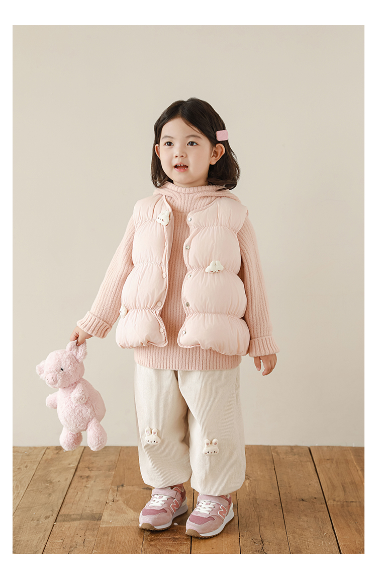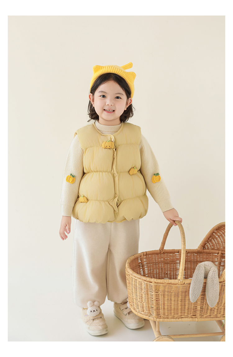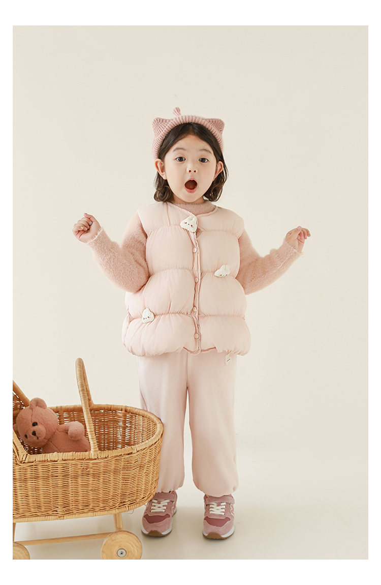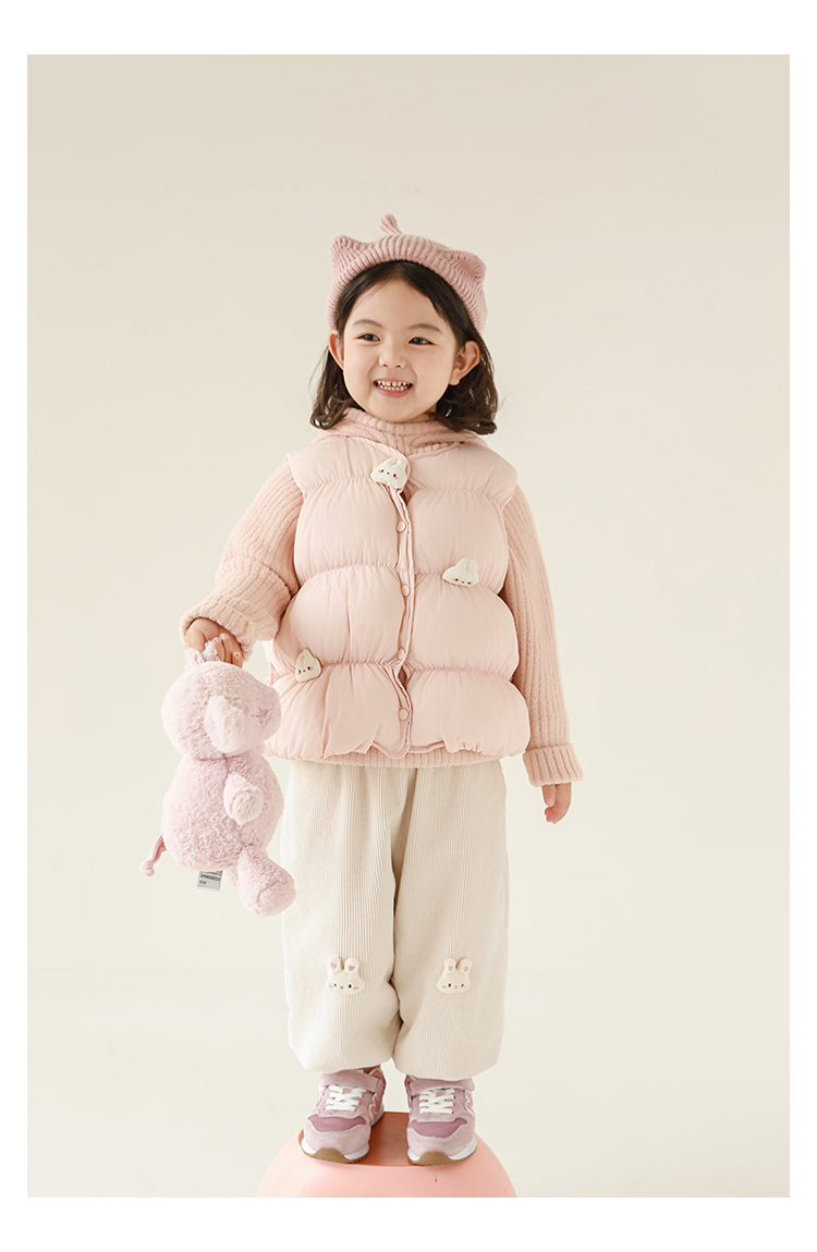 우리부이 여아용 면조끼 2025 겨울 어린이용 귀여운 인형 방풍 보온 조끼