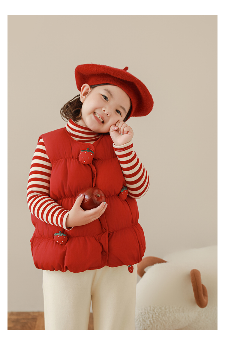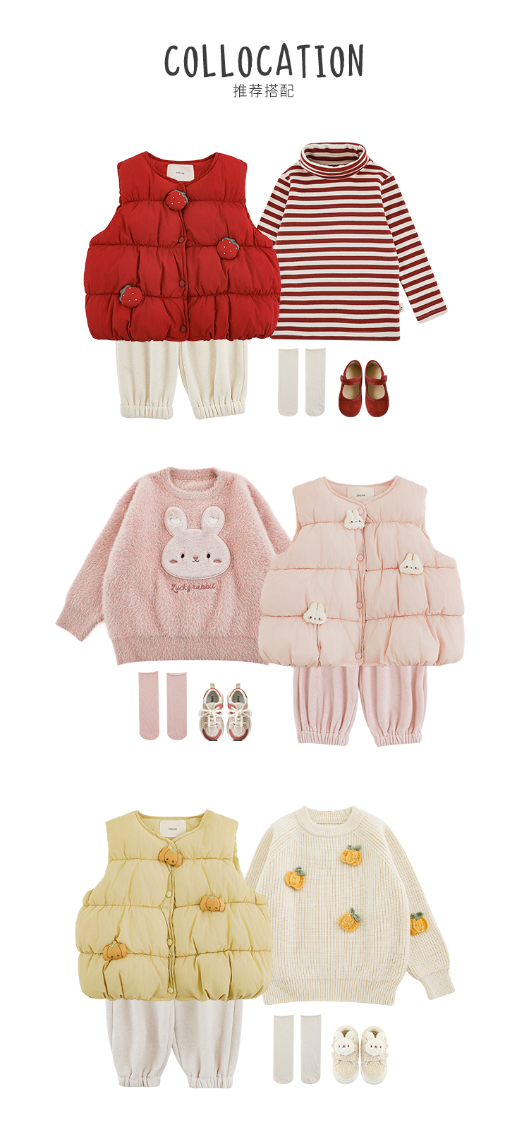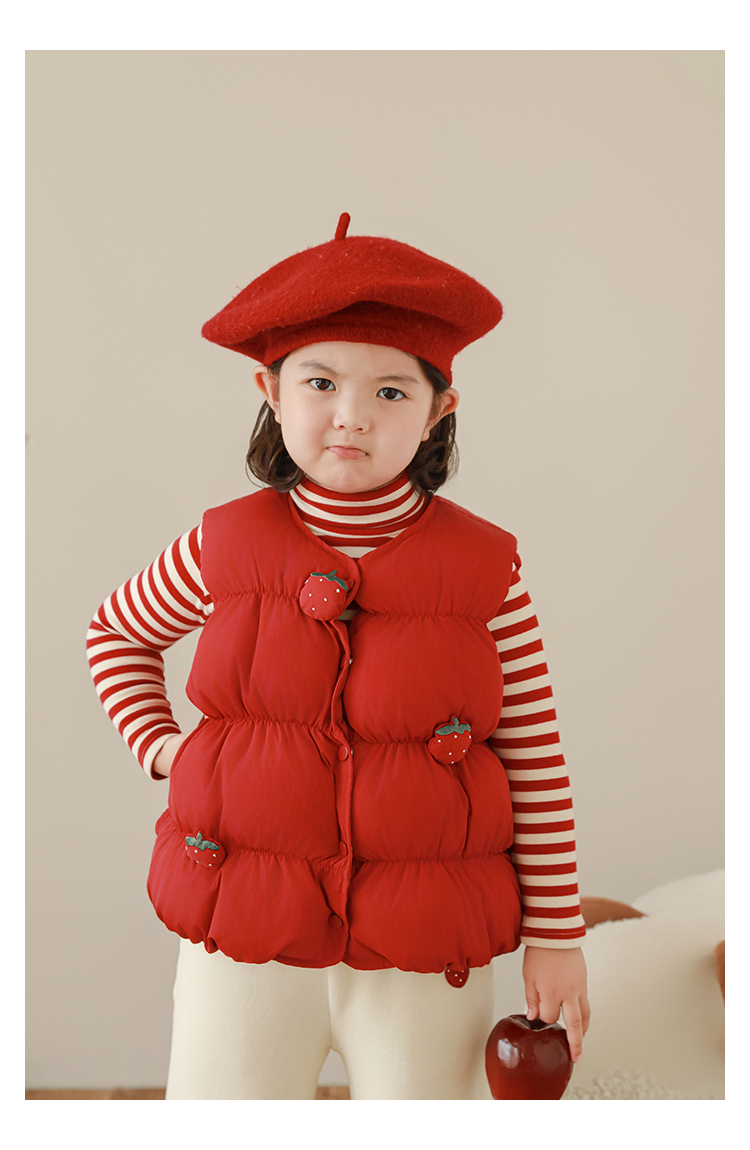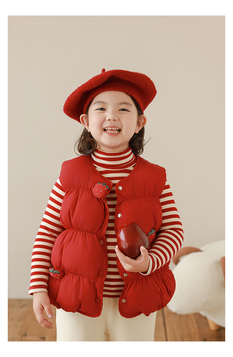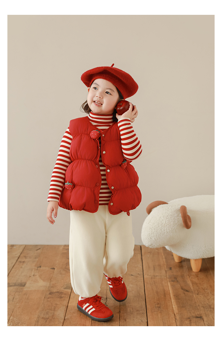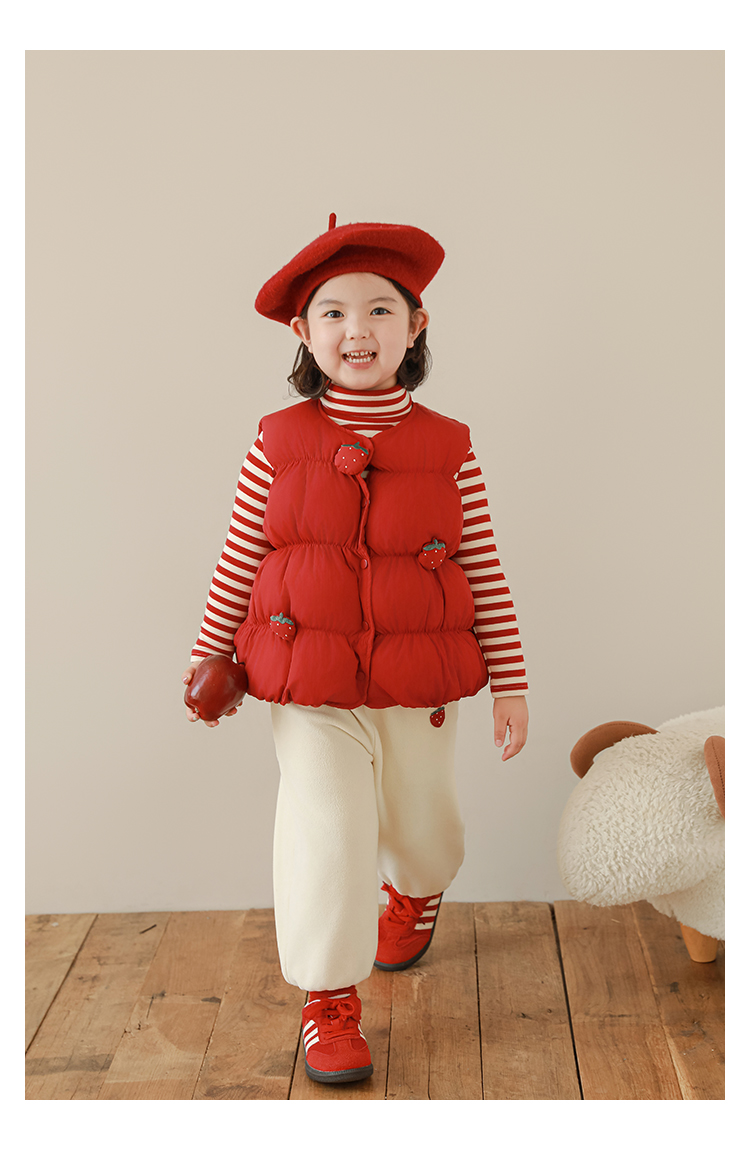 우리부이 여아용 면조끼 2025 겨울 어린이용 귀여운 인형 방풍 보온 조끼