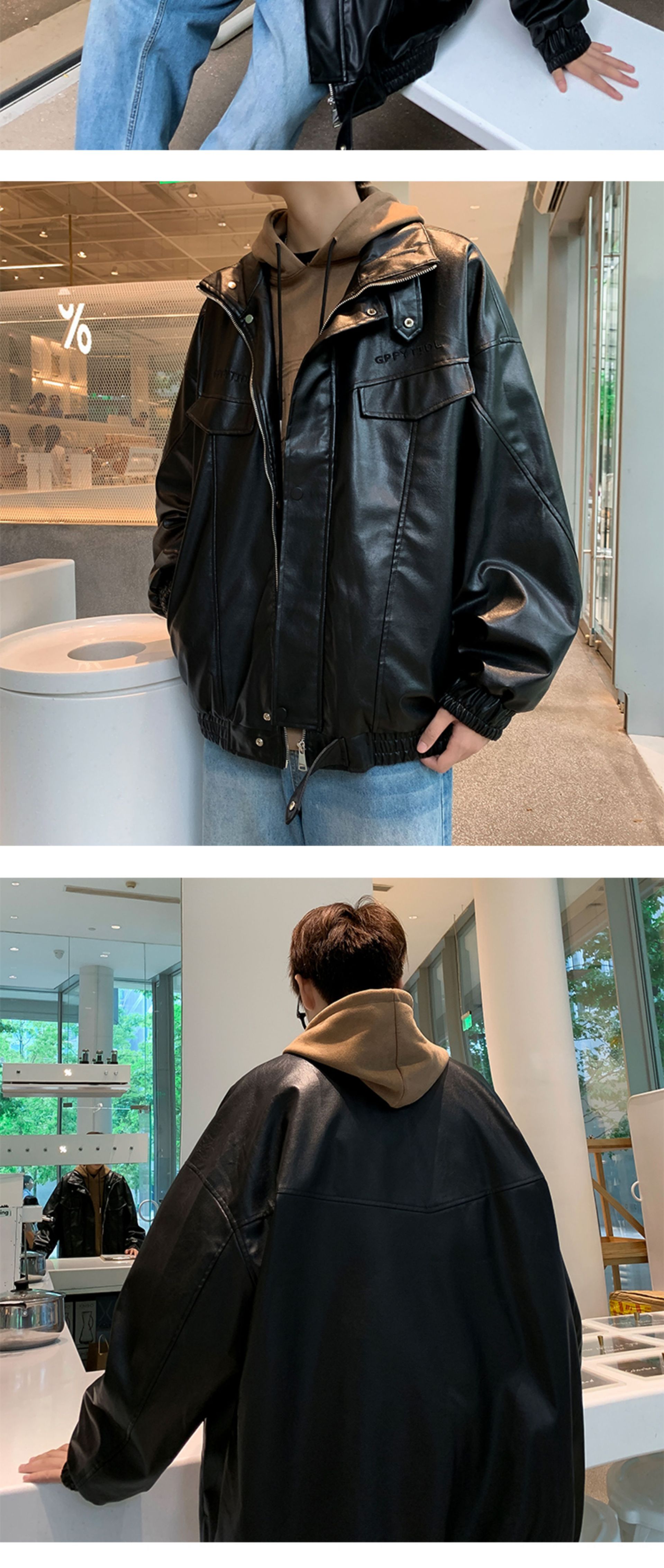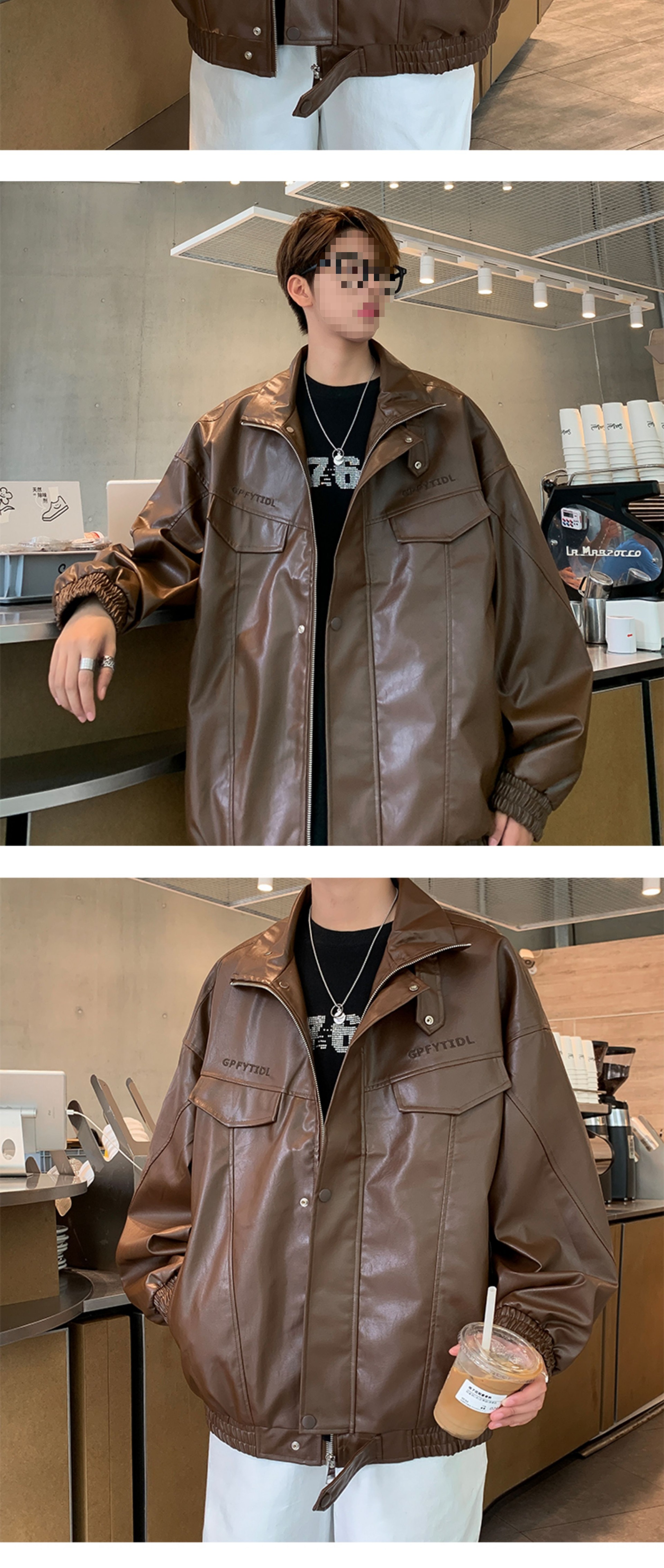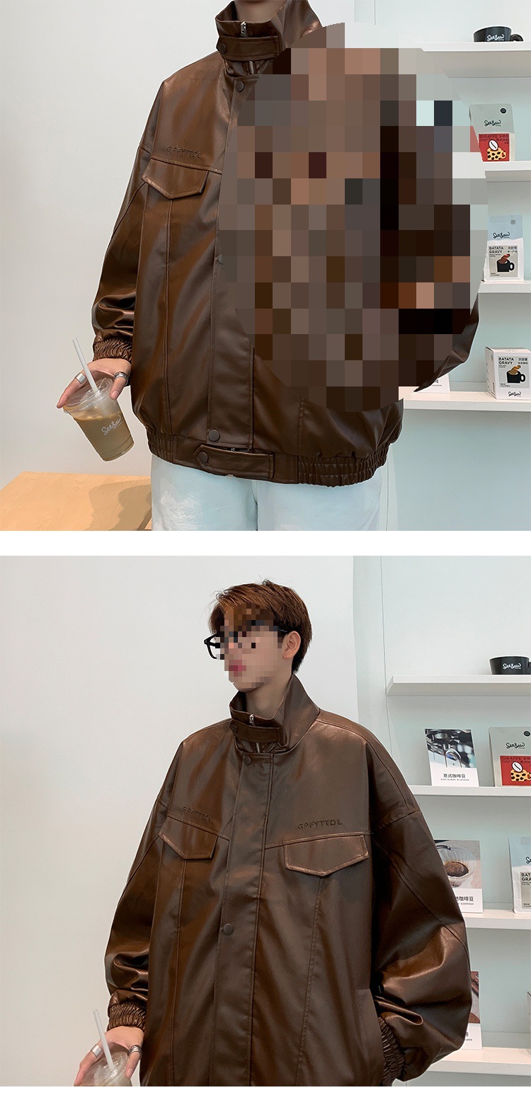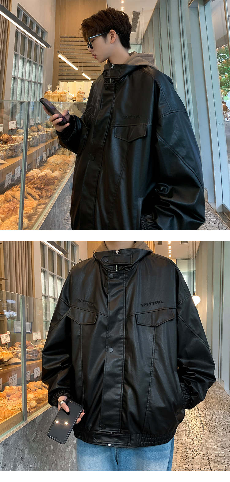 자수 스탠드 칼라 pu 가죽 재킷 남성 가을 유행 느슨한 디자인 감각 코트 미국 빈티지 오토바이 의류 가죽 재킷스토어 가기