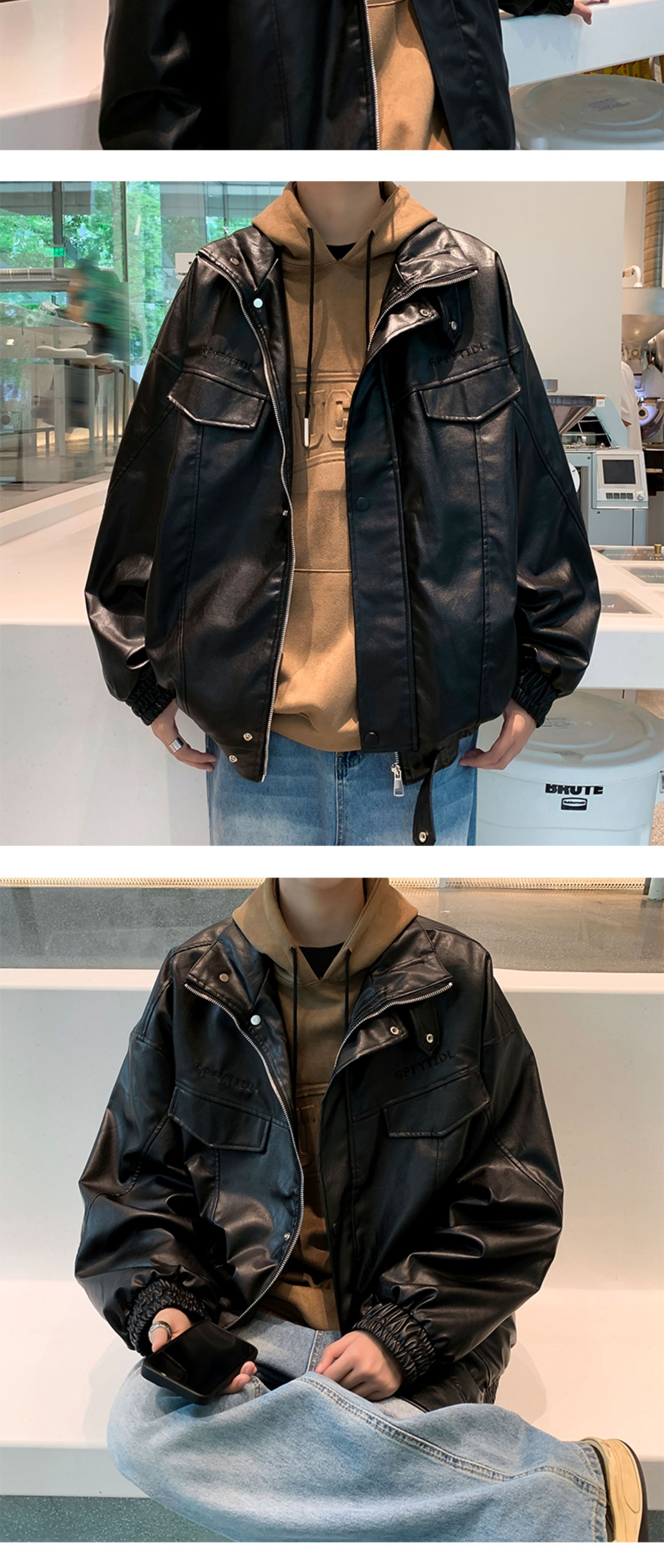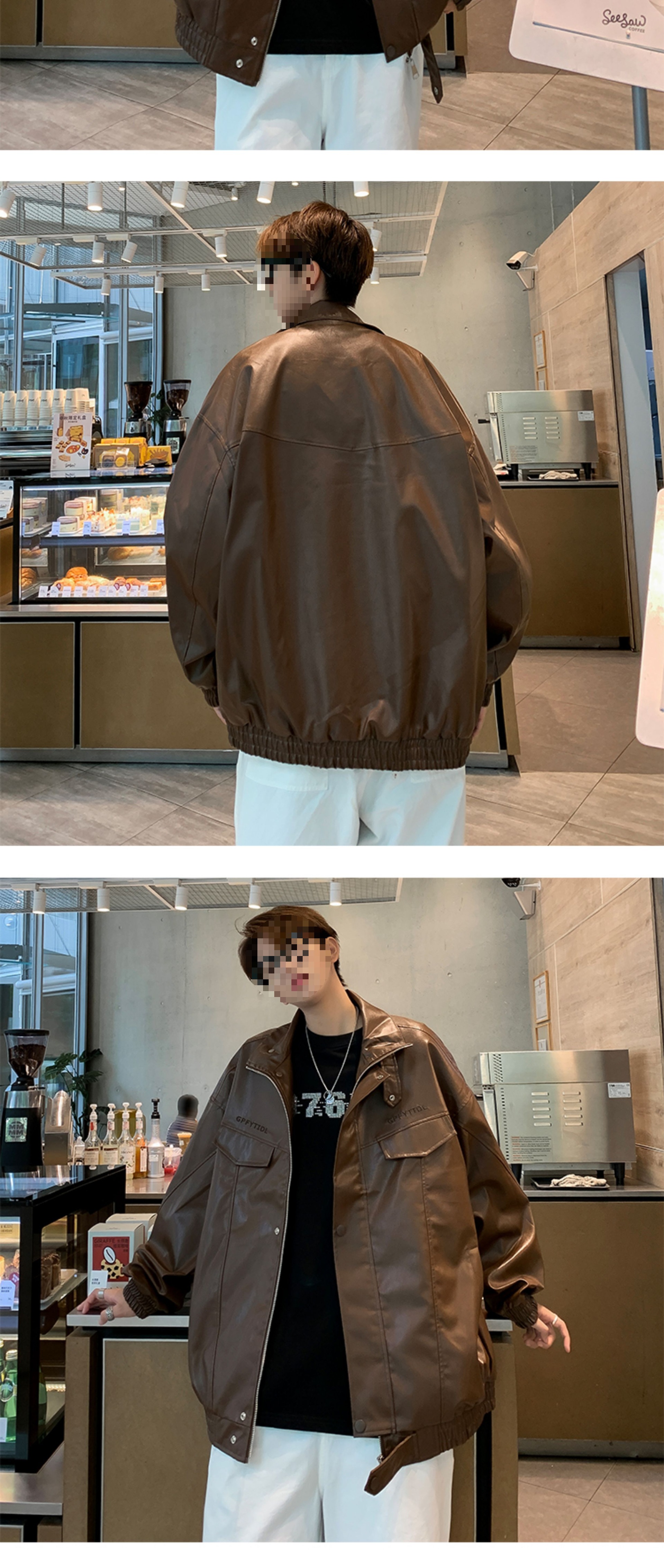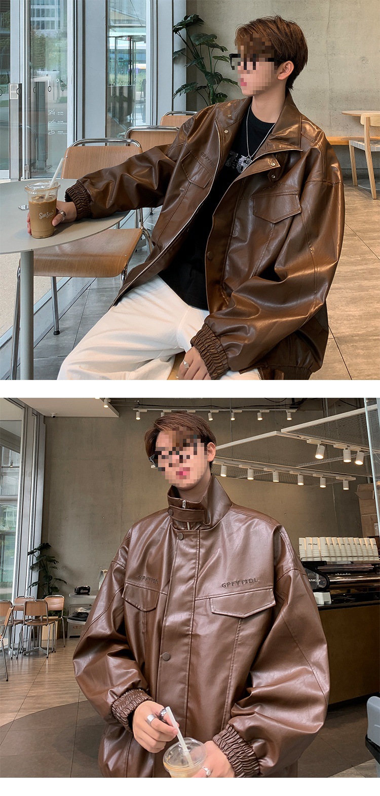 자수 스탠드 칼라 pu 가죽 재킷 남성 가을 유행 느슨한 디자인 감각 코트 미국 빈티지 오토바이 의류 가죽 재킷스토어 가기