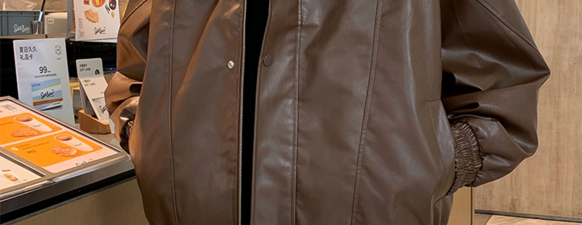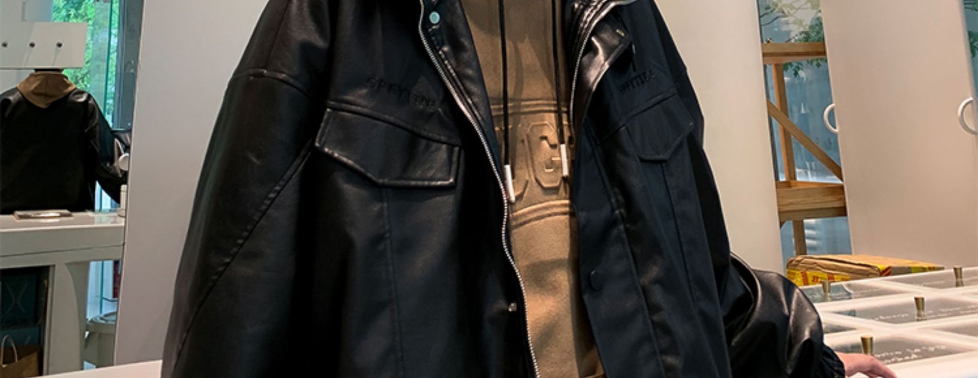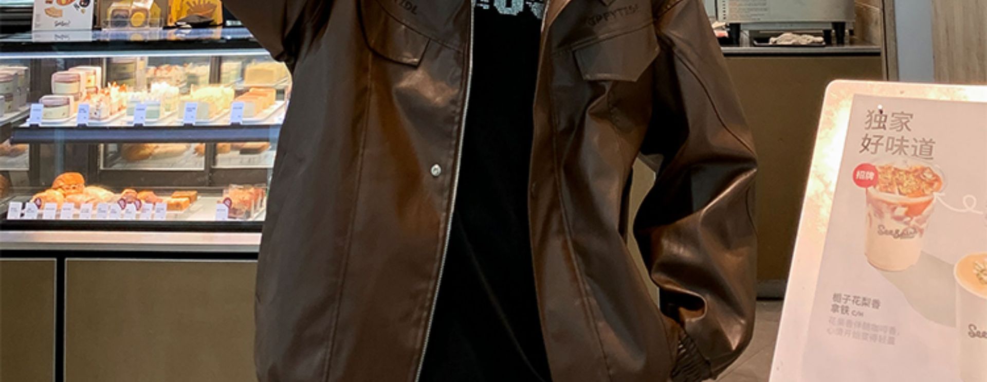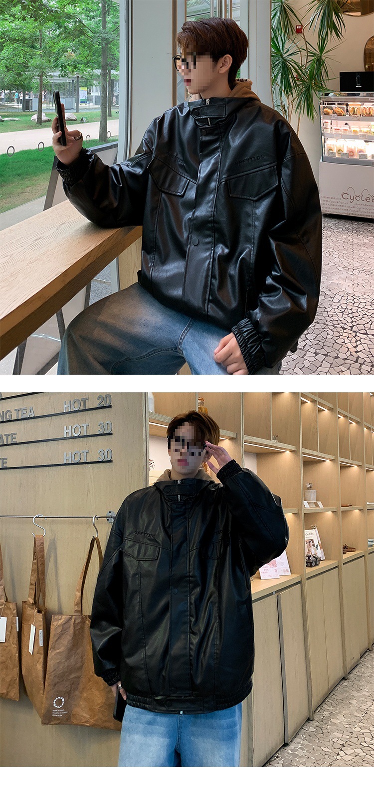 자수 스탠드 칼라 pu 가죽 재킷 남성 가을 유행 느슨한 디자인 감각 코트 미국 빈티지 오토바이 의류 가죽 재킷스토어 가기