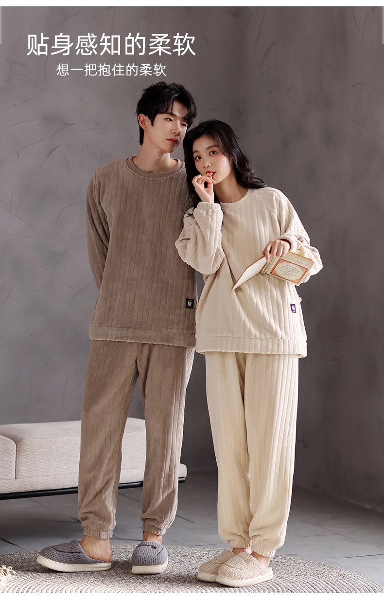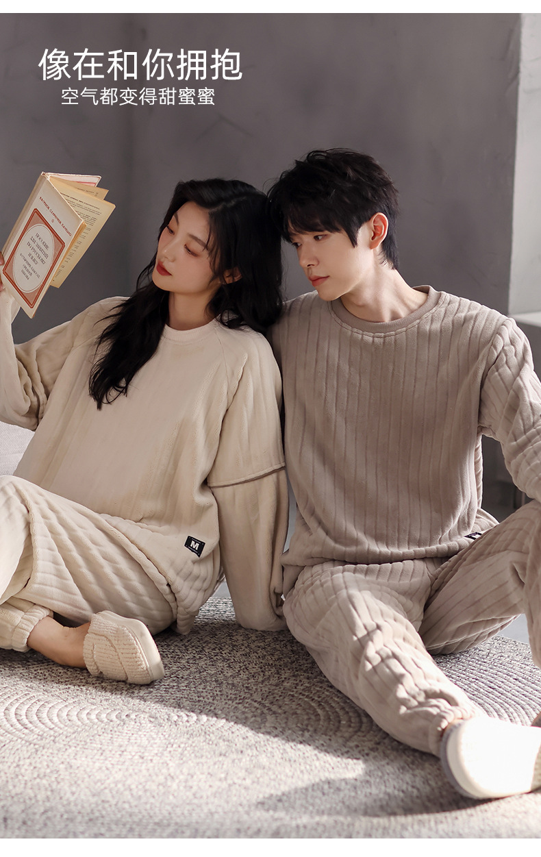 커플 잠옷 겨울 새로운 둥근 목 솔리드 컬러 플러스 사이즈 겉옷 겨울 플란넬 홈 옷 투피스 세트