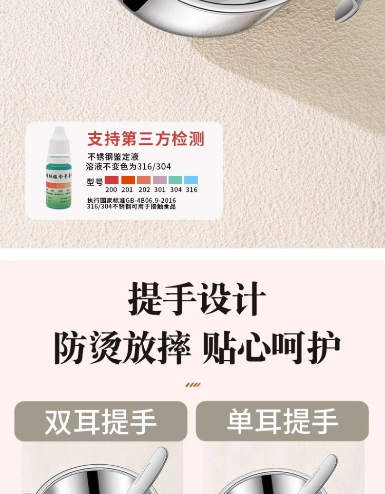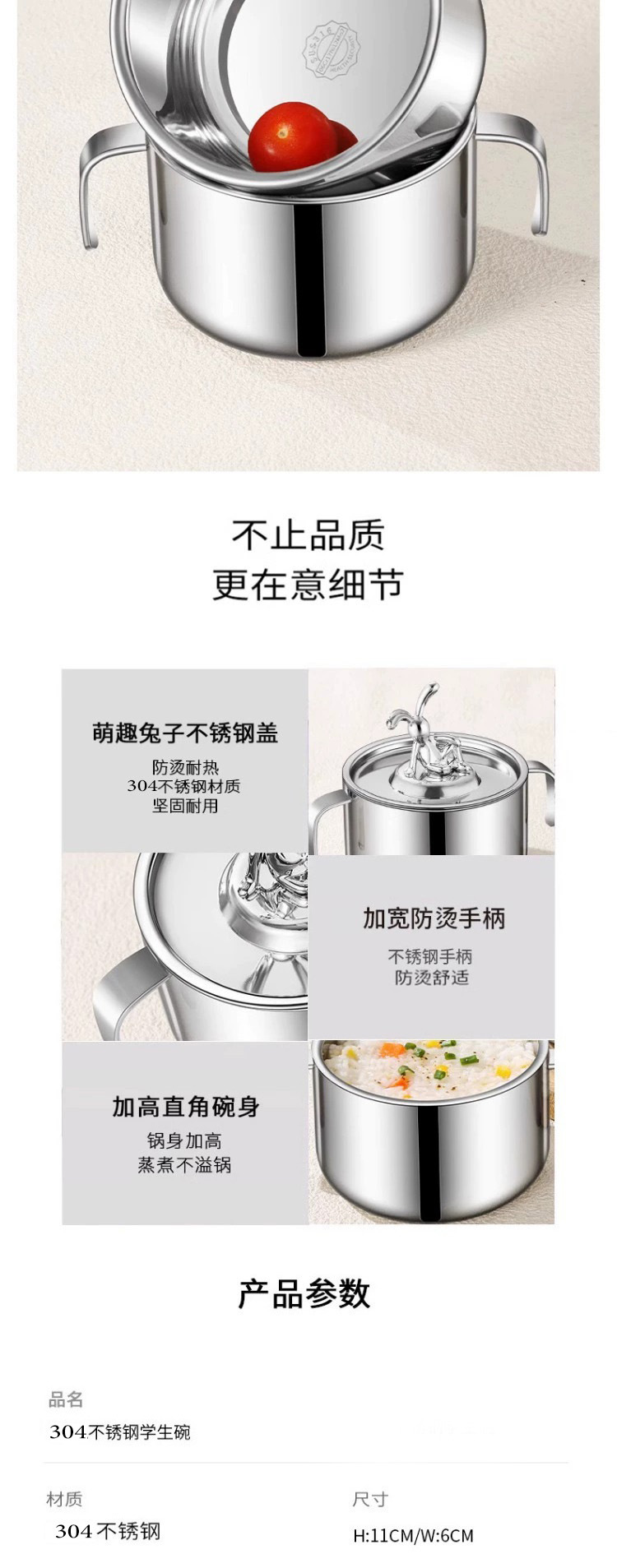 304 어린이용 스테인리스 화상 방지 도시락, 초등학생 및 중학생 전용 뚜껑이 있는 이중 손잡이 수프 그릇 식기