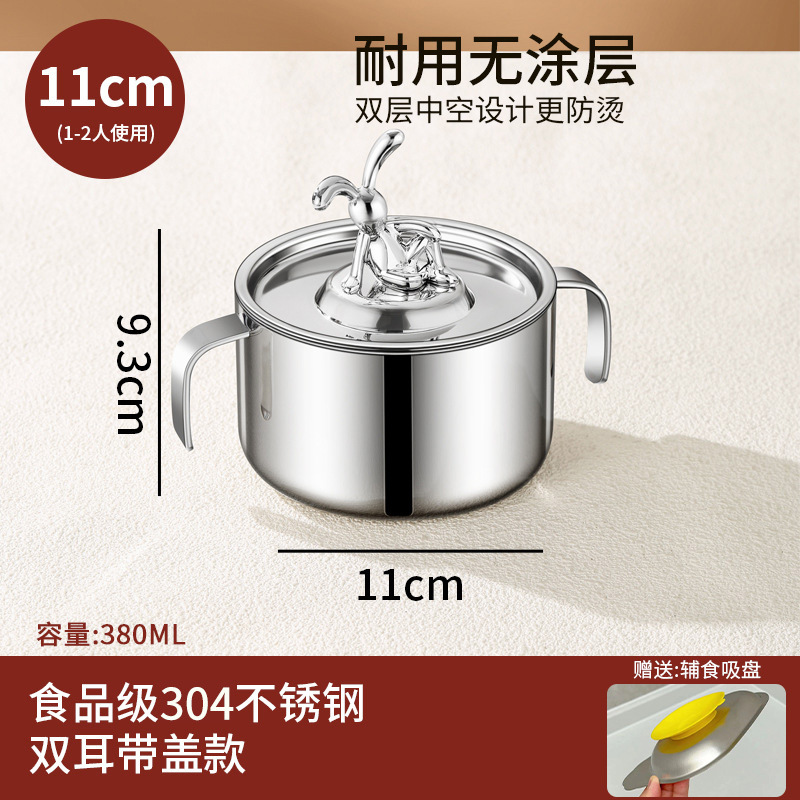 • 304 스테인리스 스틸 어린이 식기 세트 (양손 손잡이 뚜껑 포함) [흡착판 증정] + 스푼/포크