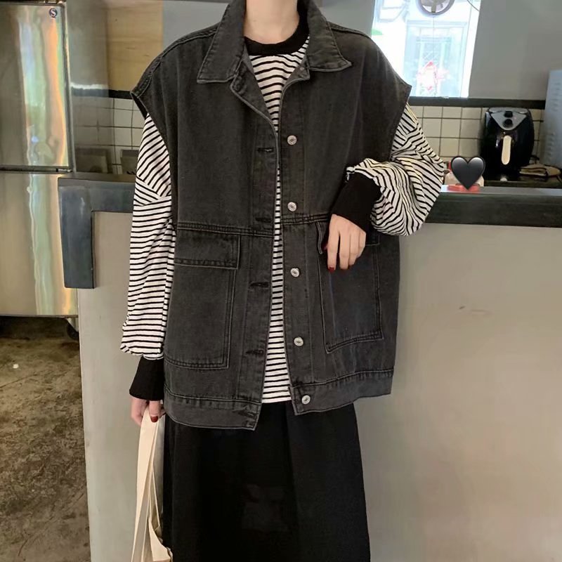 디자인 센스 트렌디 한 데님 코트 여성의 봄과 가을 2024 새로운 느슨한 서양식 복고풍 최고 조끼 암소스토어 가기