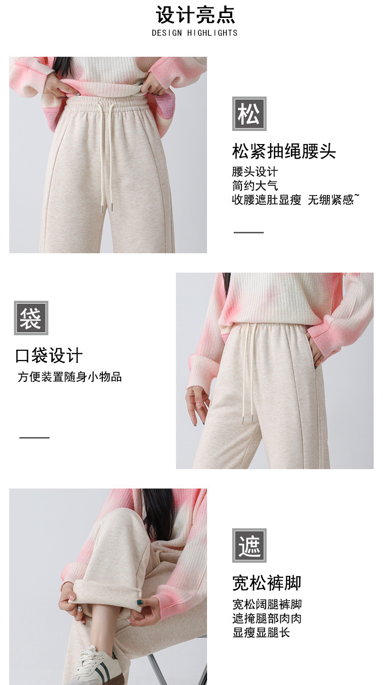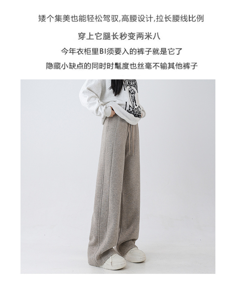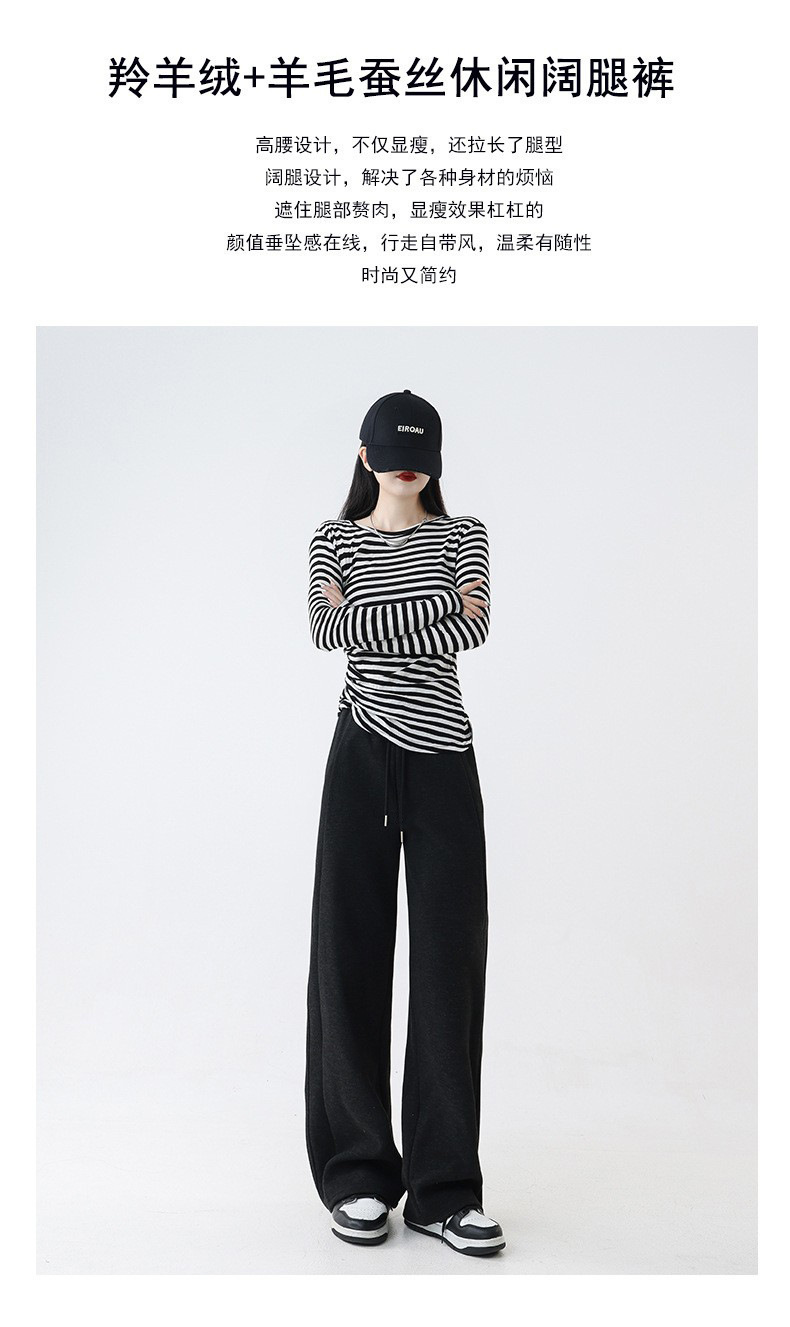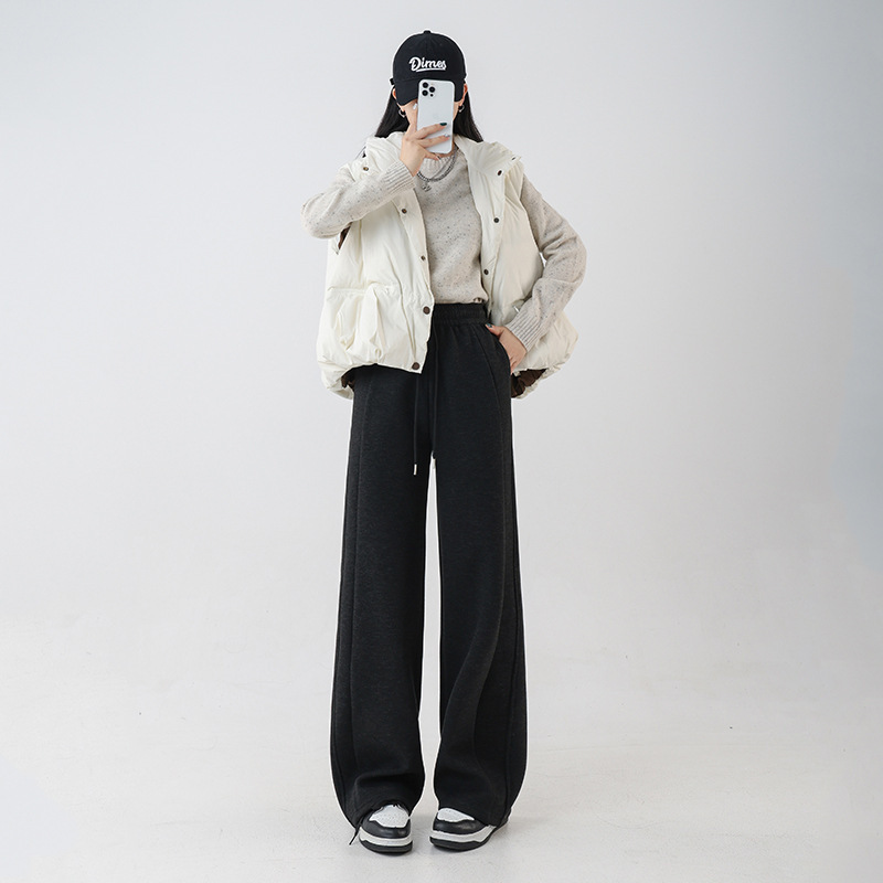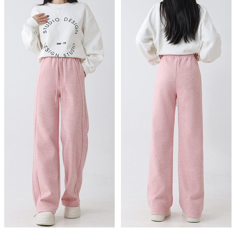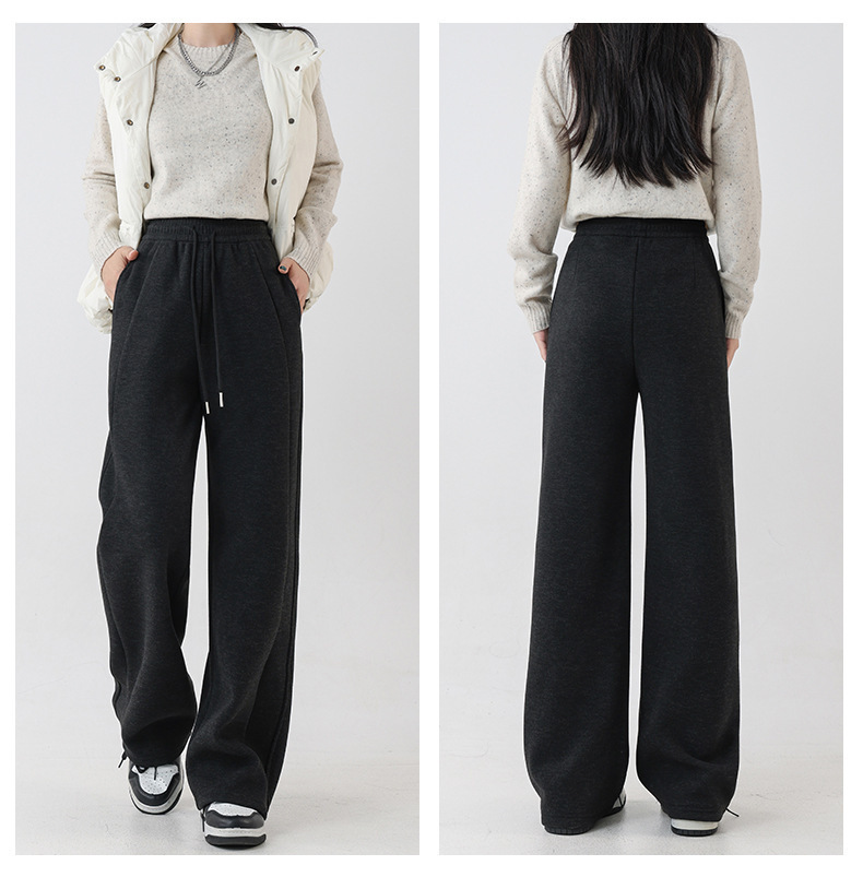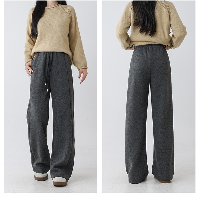 봄과 가을 2025 새로운 여성 영양 벨벳 스포츠 캐주얼 좁은 넓은 다리 바지 높은 허리 기모 두꺼운 바나나 바지스토어 가기