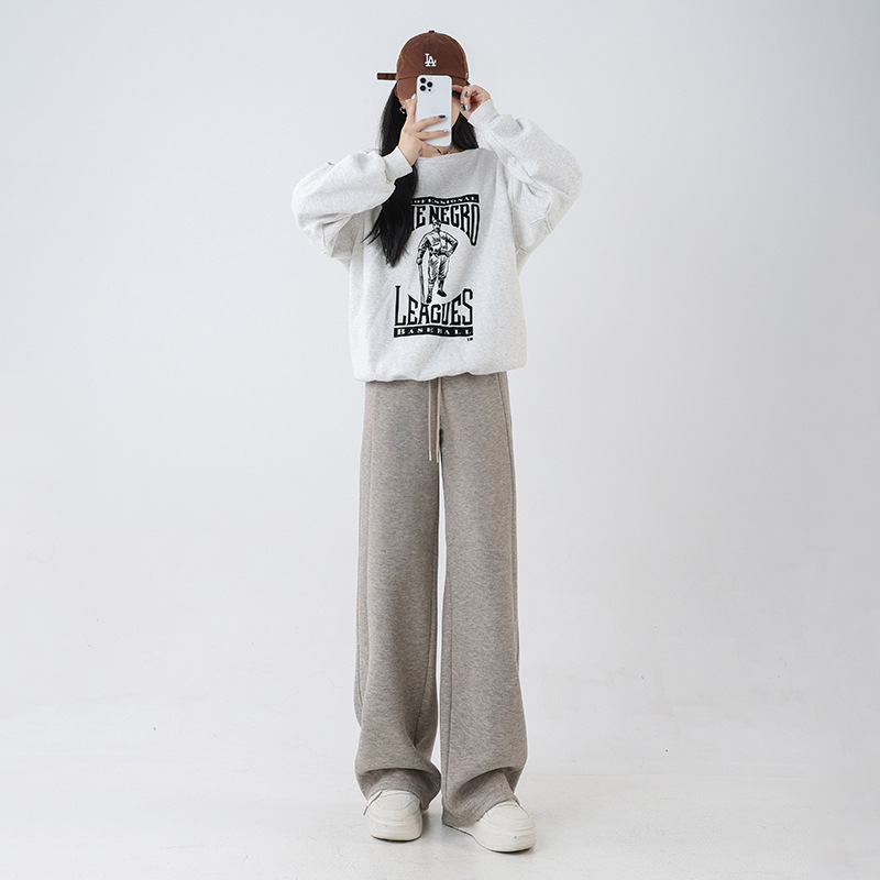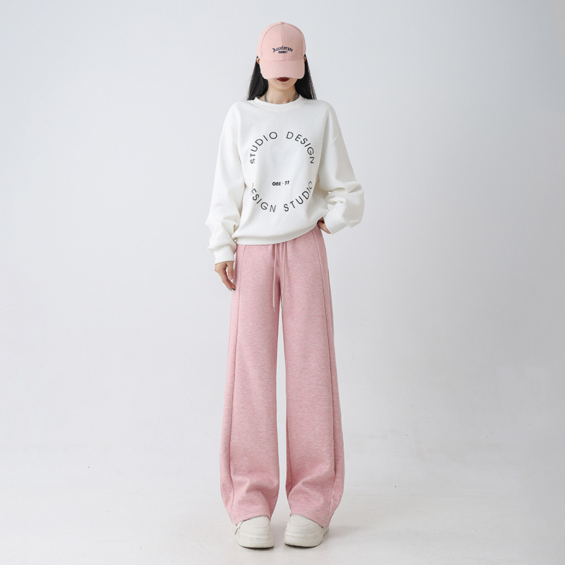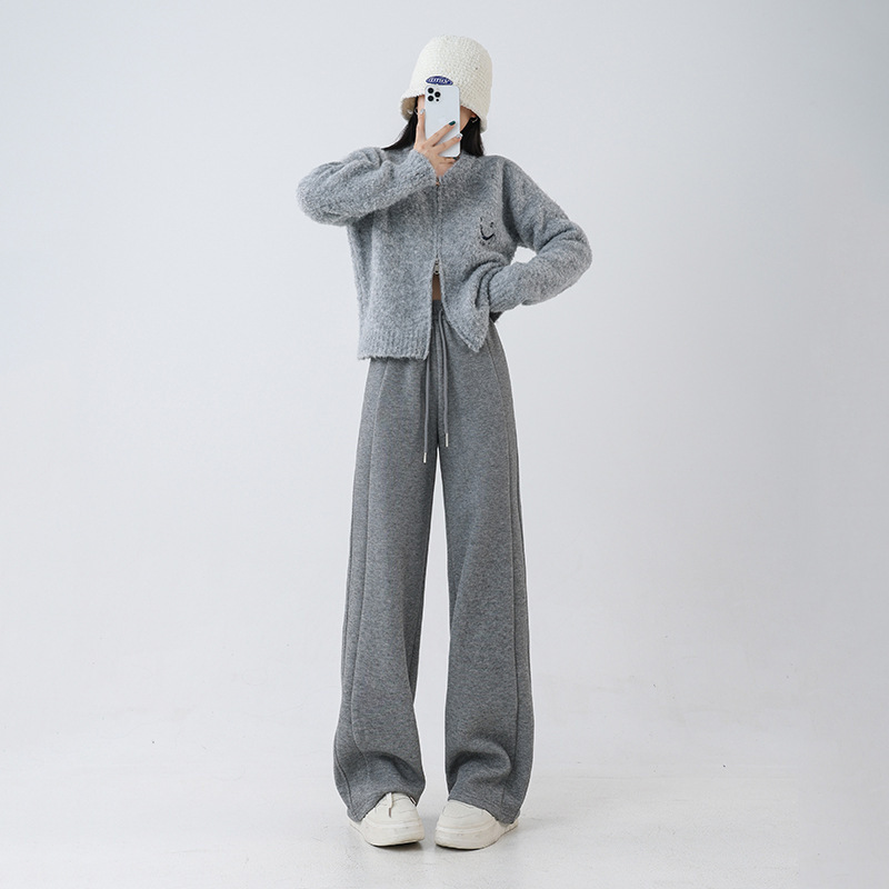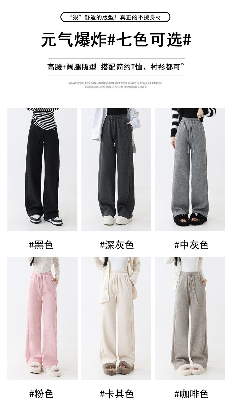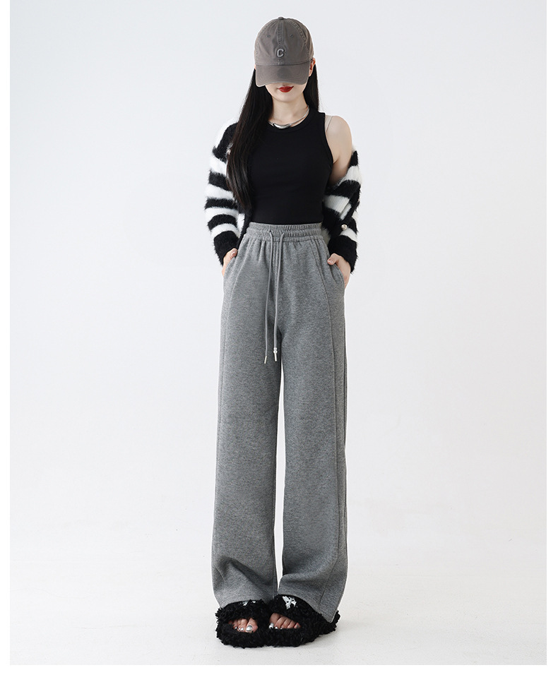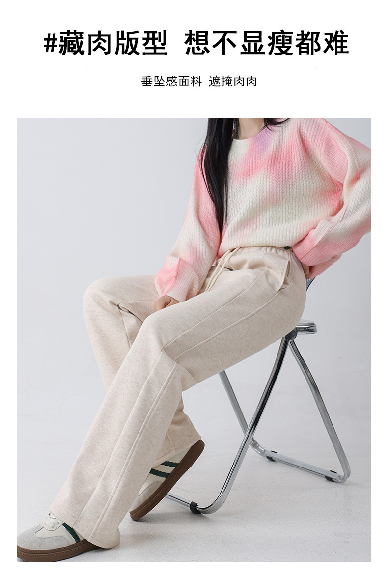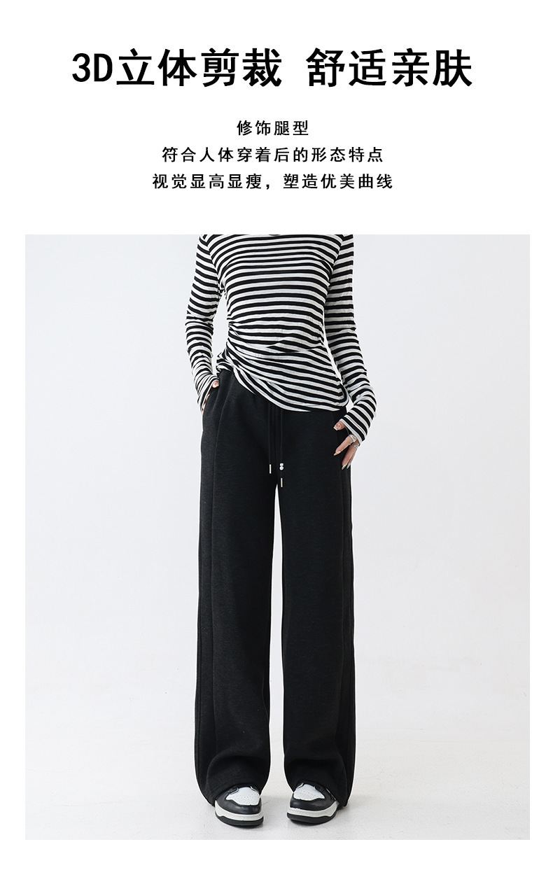 봄과 가을 2025 새로운 여성 영양 벨벳 스포츠 캐주얼 좁은 넓은 다리 바지 높은 허리 기모 두꺼운 바나나 바지스토어 가기