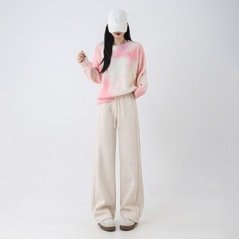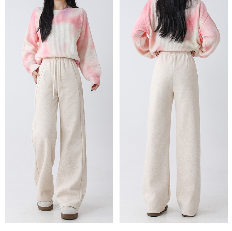 봄과 가을 2025 새로운 여성 영양 벨벳 스포츠 캐주얼 좁은 넓은 다리 바지 높은 허리 기모 두꺼운 바나나 바지