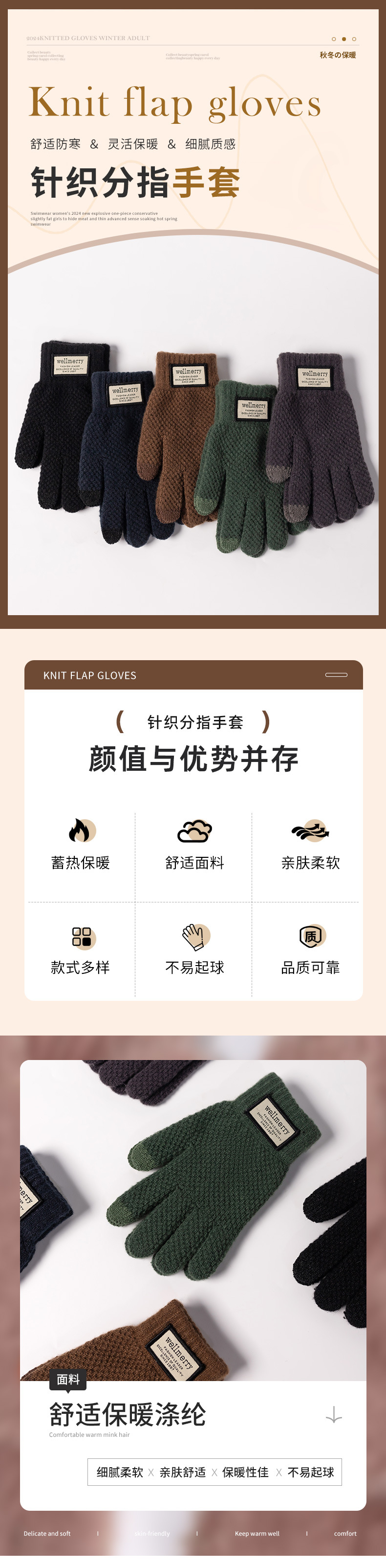 겨울용 두꺼운 한국 스타일 방한 귀여운 사이클링 터치스크린 따뜻한 니트 장갑 남녀 공용 분리형 손가락 따뜻한 장갑스토어 가기