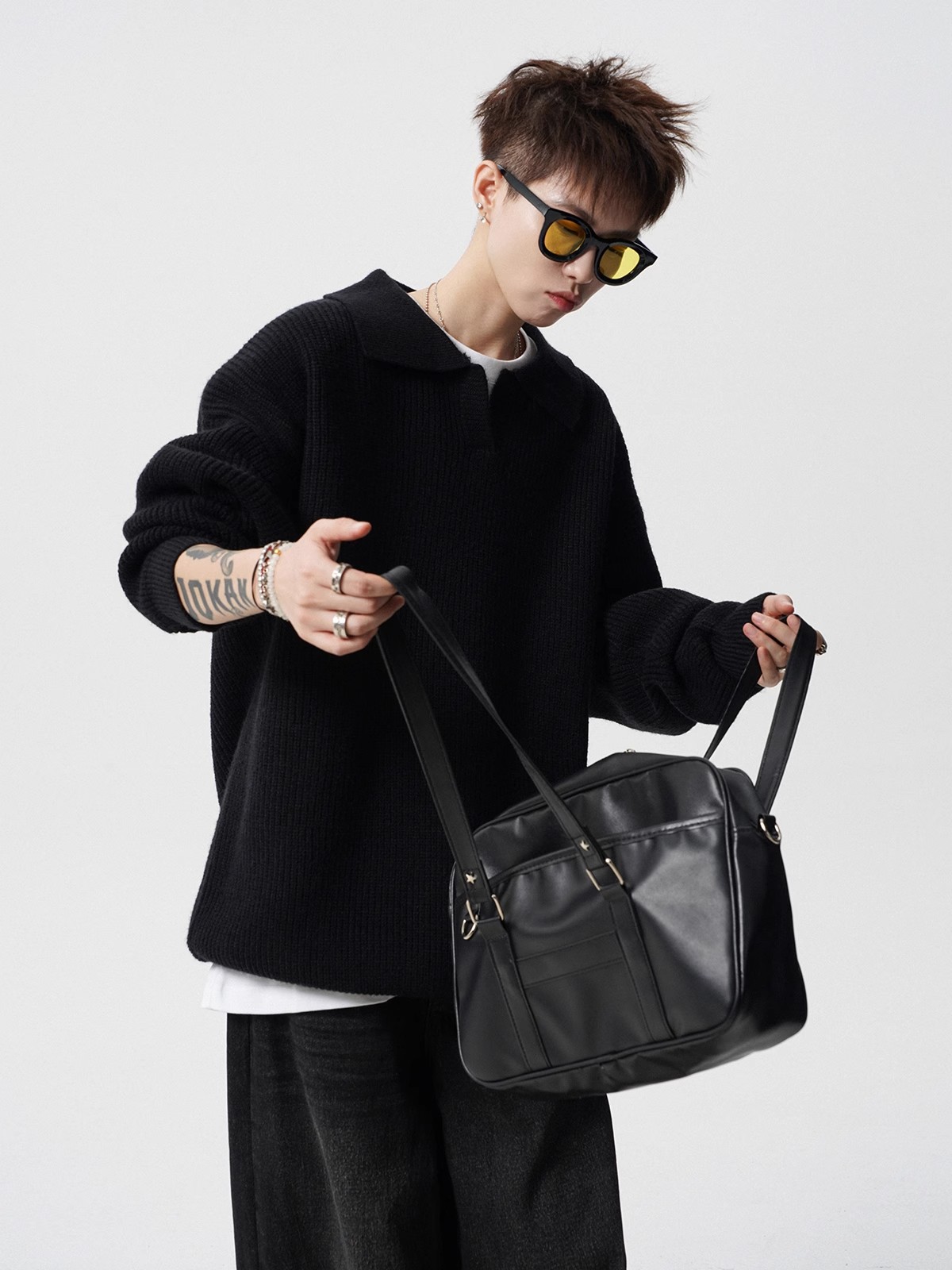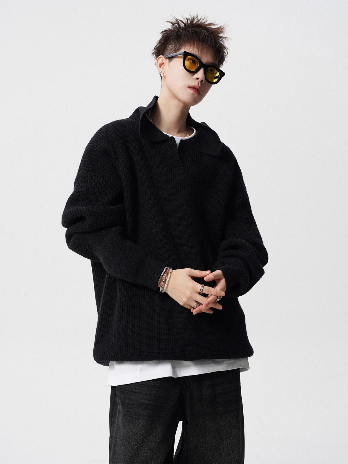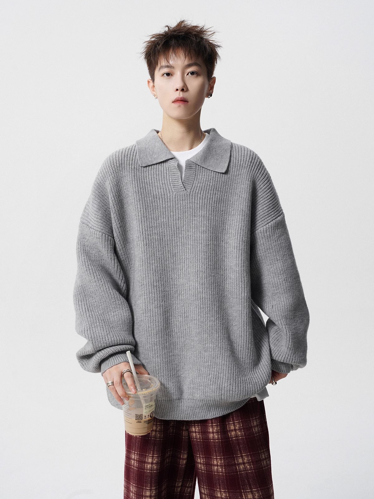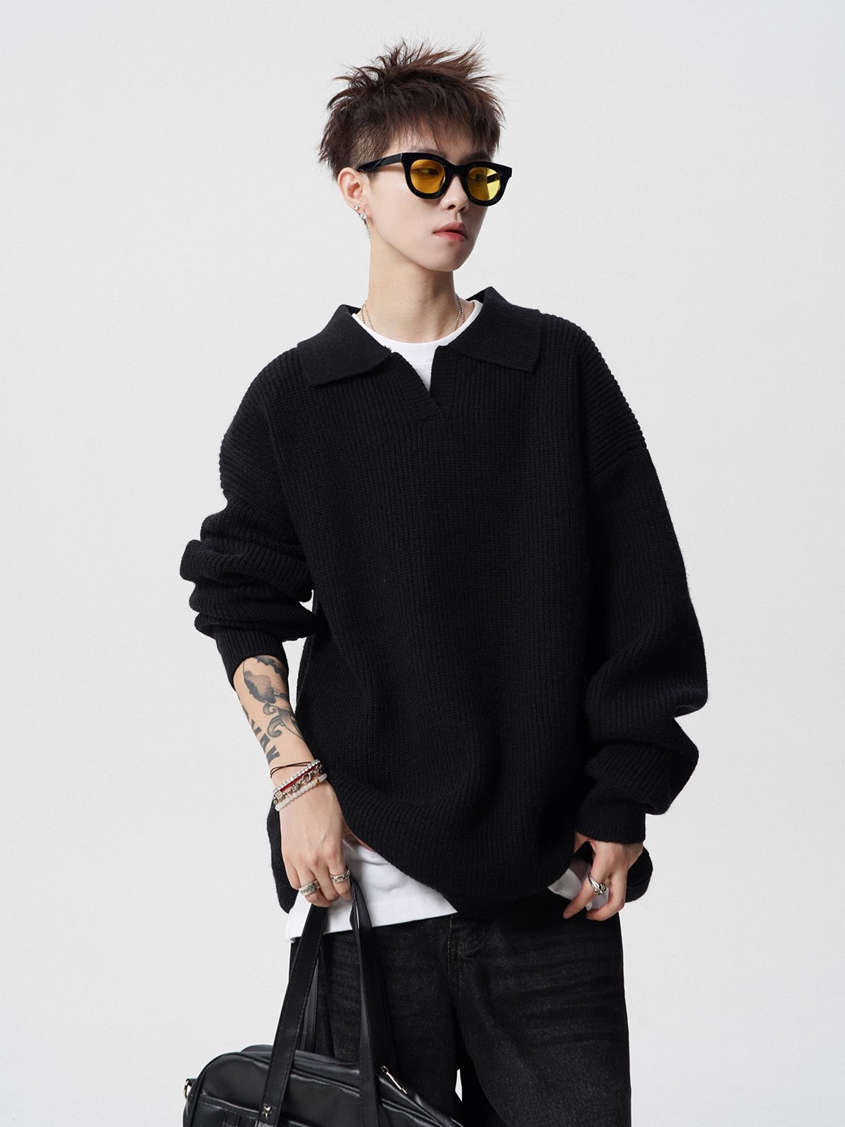 미국 단색 폴로 셔츠 스웨터 남자 가을 겨울 패션 브랜드 옷깃 니트 하이 스트리트 올 매치 캐주얼 스포츠 탑