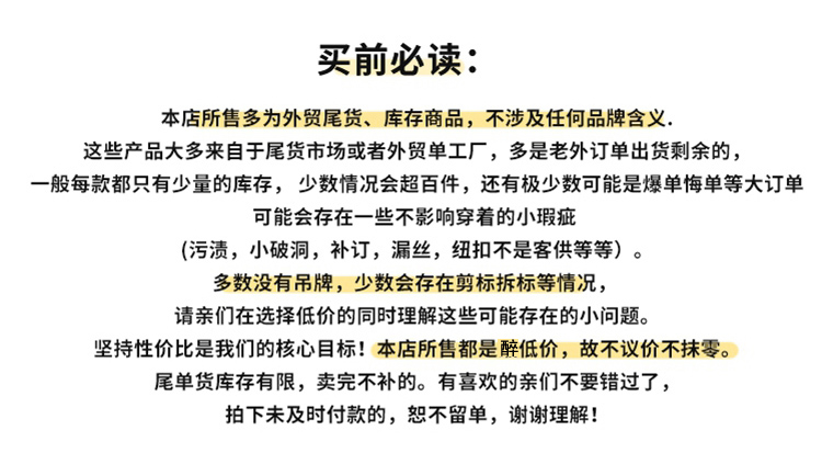 注:尾货清瑕疵会有避不了了(小摩擦,小破损等)