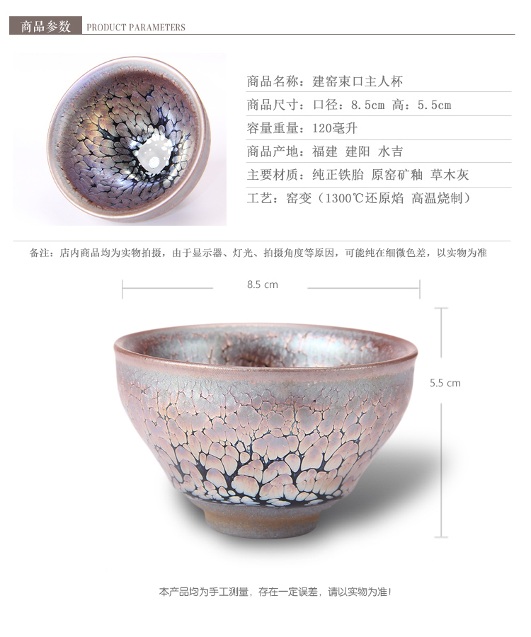 建阳建盏茶杯主人杯紫金油滴杯铁胎单杯茶具纯手工品茗杯天目昌凌스토어 가기