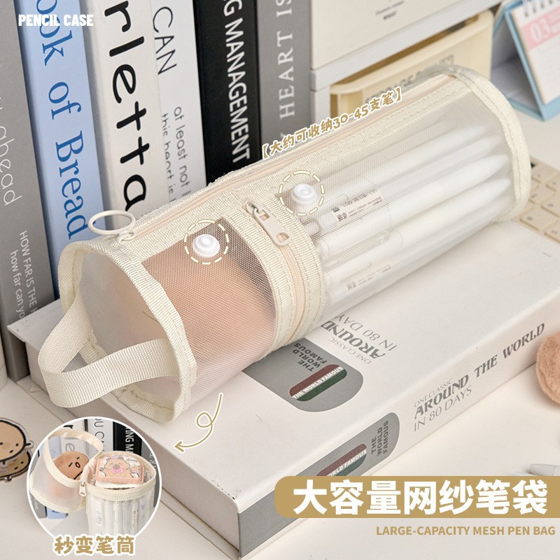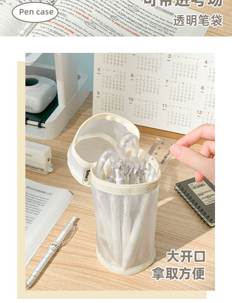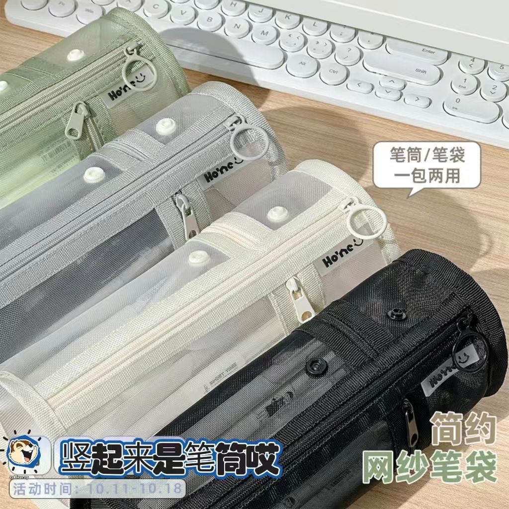 메모리 라이트 및 섀도우 메쉬 이중 목적 연필 케이스 간단한 투명 검사 문구 가방 남성과 여성의 대용량 분해 펜 케이스스토어 가기