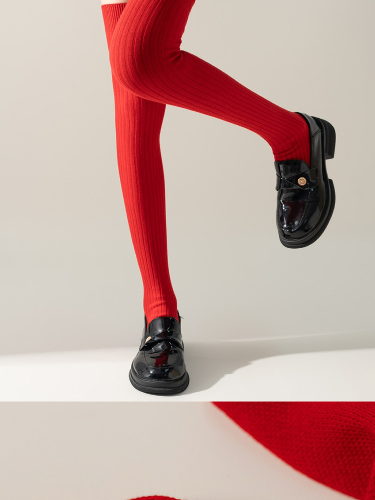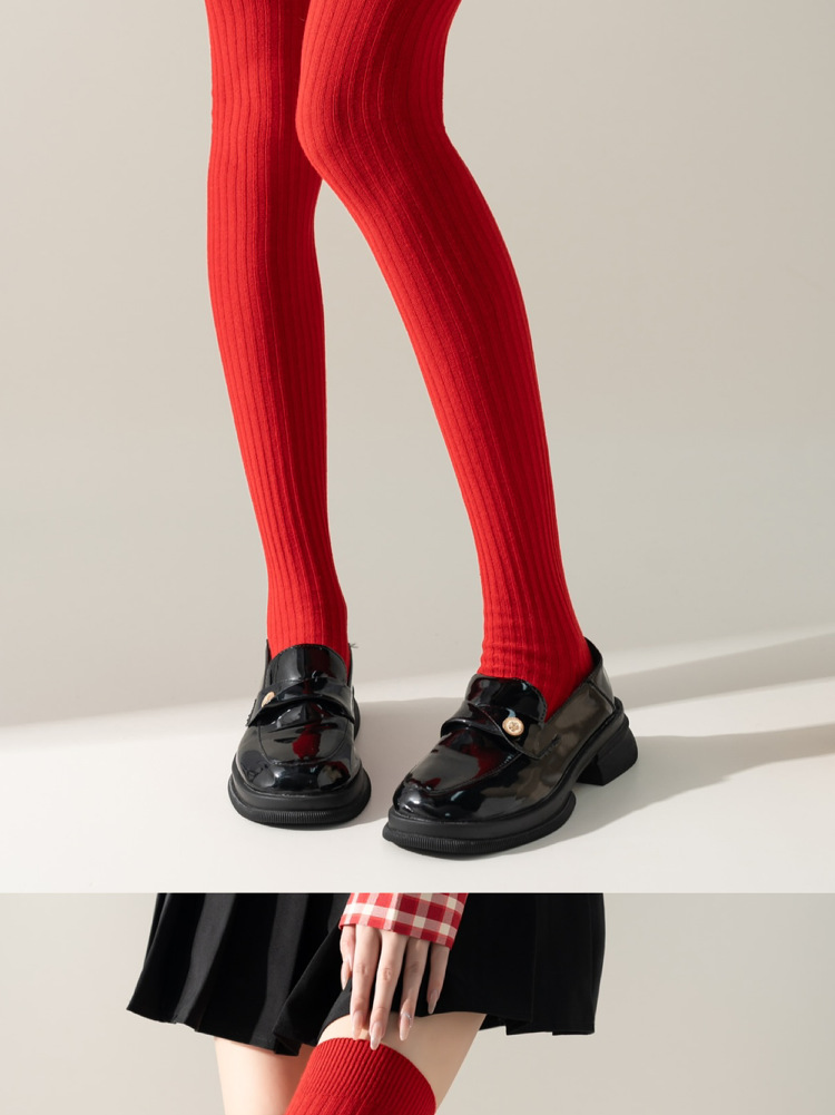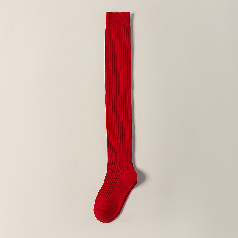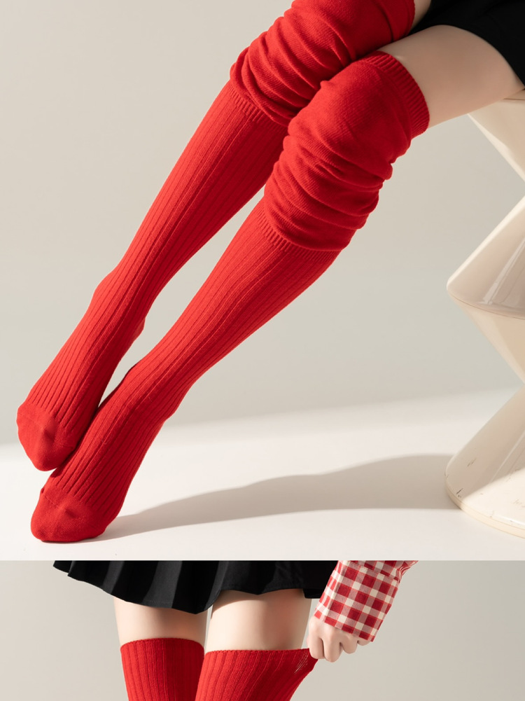 레드 설날 Ins 스타일 가을과 겨울 꼬인 무릎 양말 한국식 롱 부츠 양말 여성면 축제