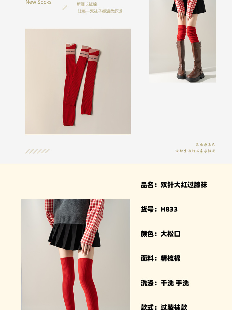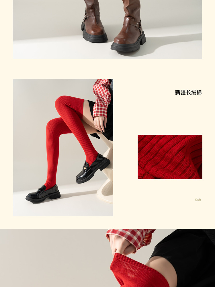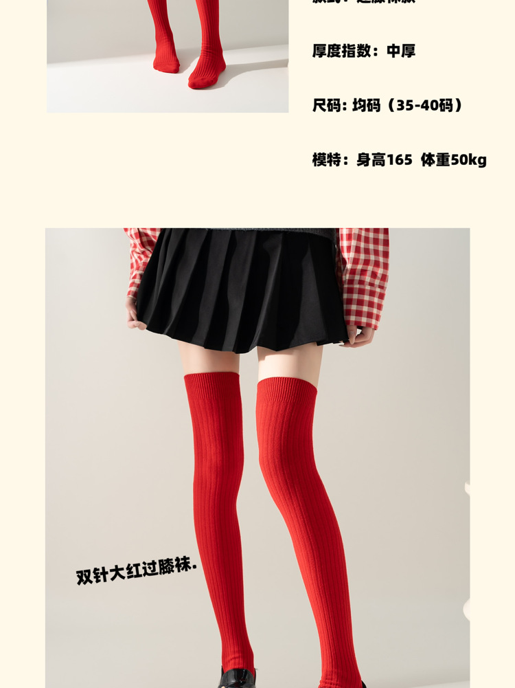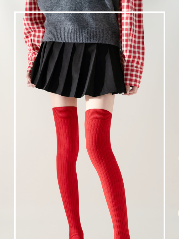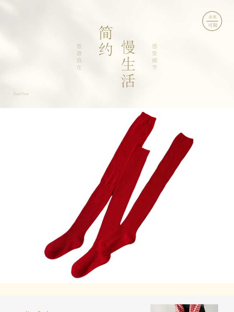 레드 설날 Ins 스타일 가을과 겨울 꼬인 무릎 양말 한국식 롱 부츠 양말 여성면 축제스토어 가기