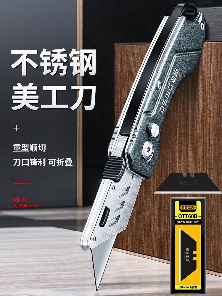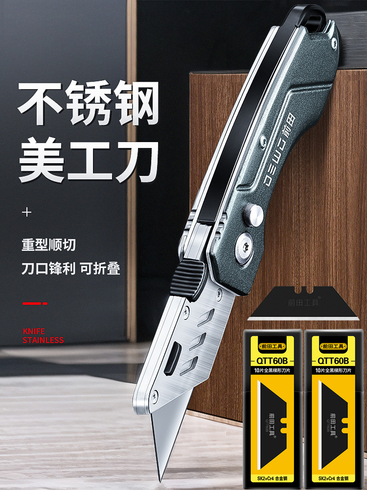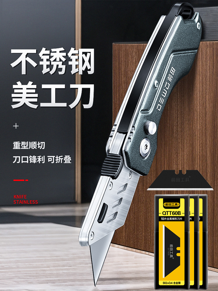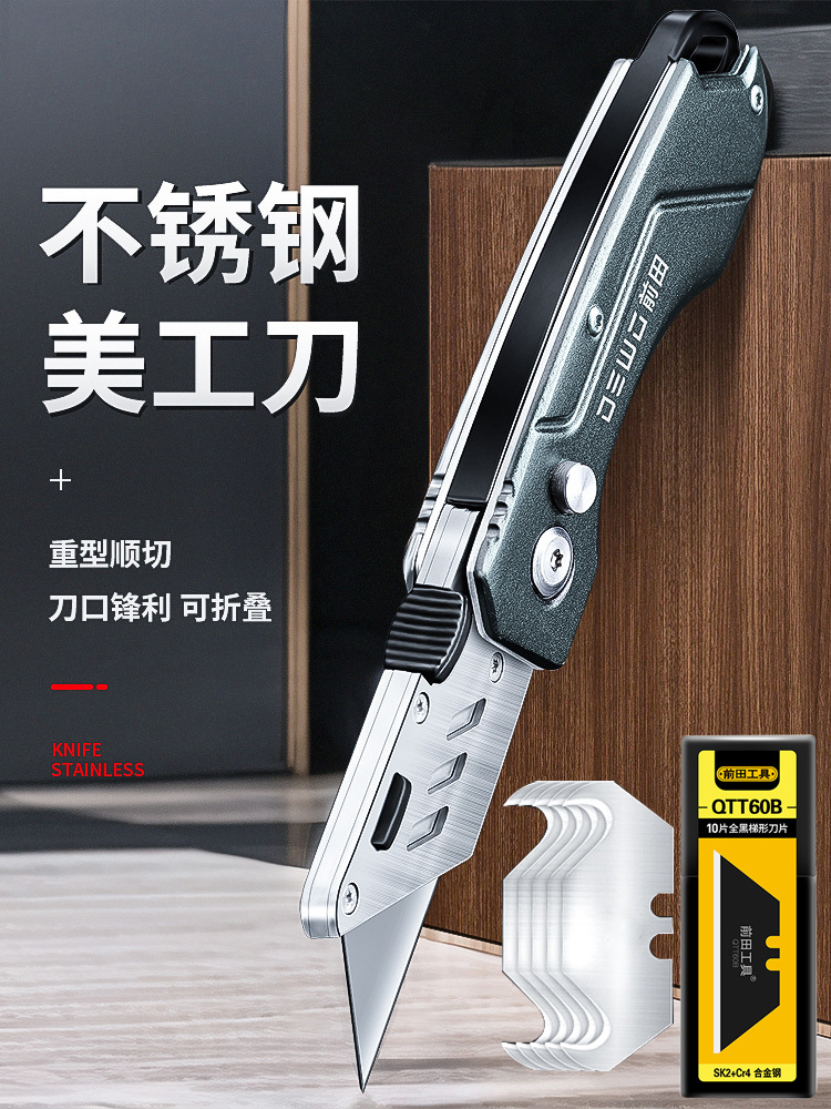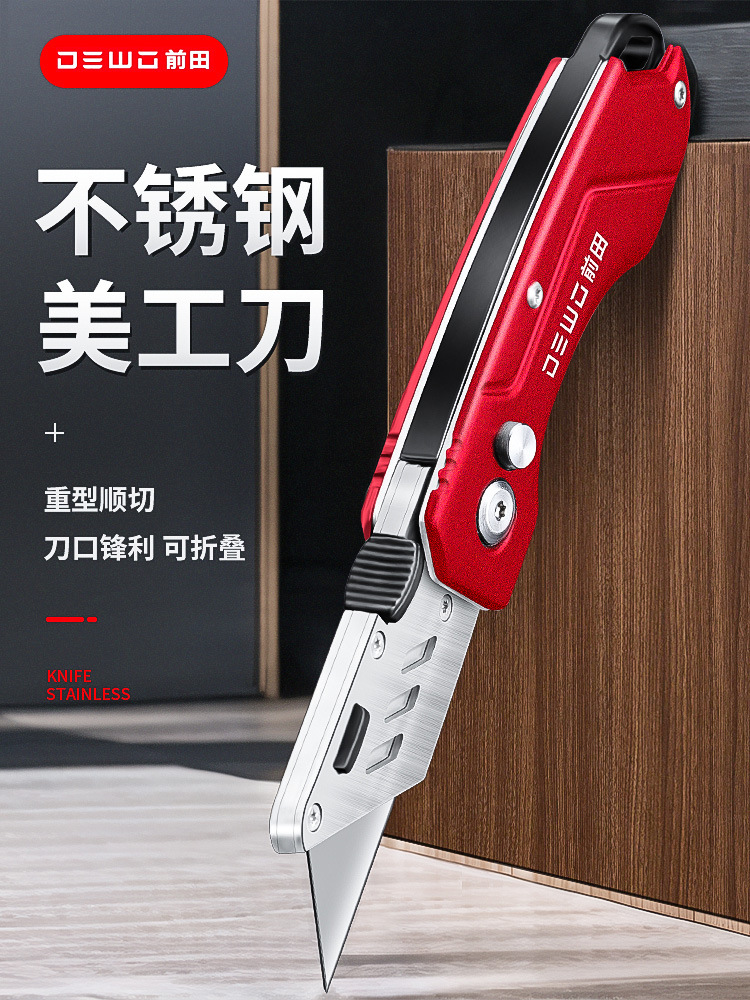 마에다 아트 나이프 무거운 의무 모든 강철 두꺼운 스테인레스 스틸 접이식 벽지 칼 산업 등급 케이블 스트리핑 전기 칼 홀터스토어 가기
