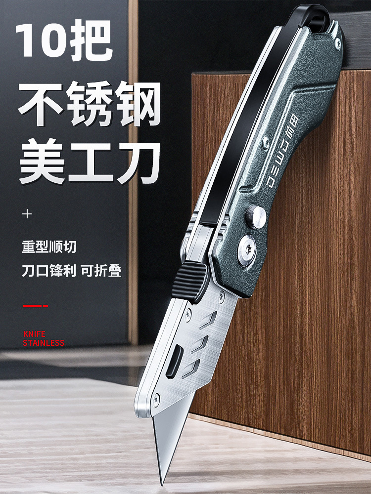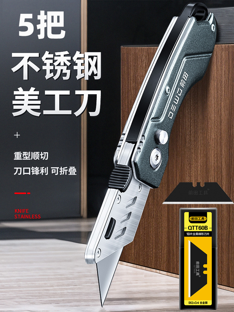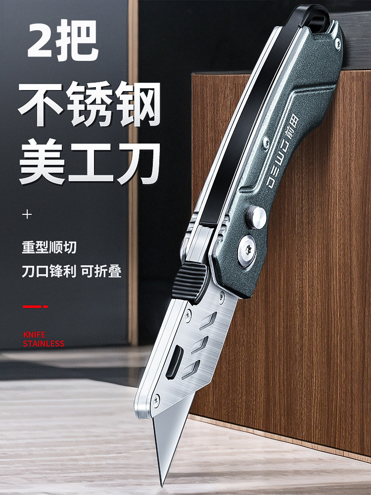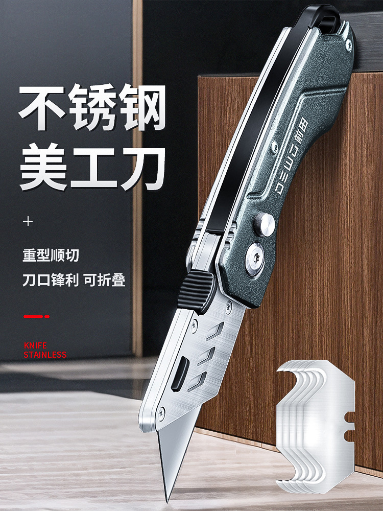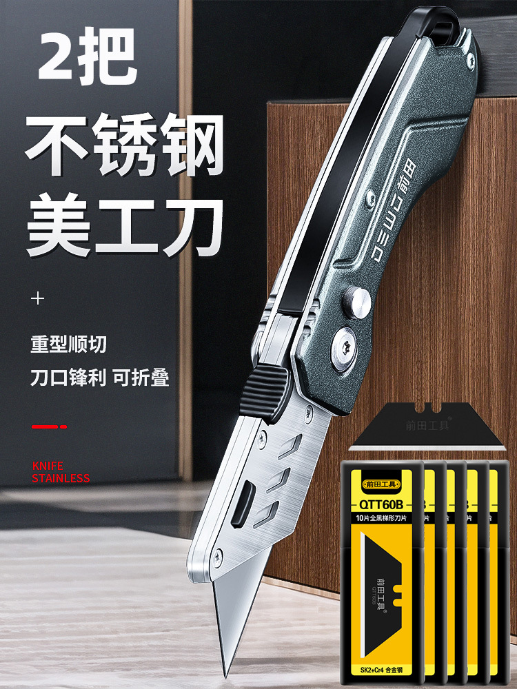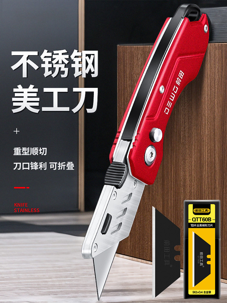 마에다 아트 나이프 무거운 의무 모든 강철 두꺼운 스테인레스 스틸 접이식 벽지 칼 산업 등급 케이블 스트리핑 전기 칼 홀터스토어 가기