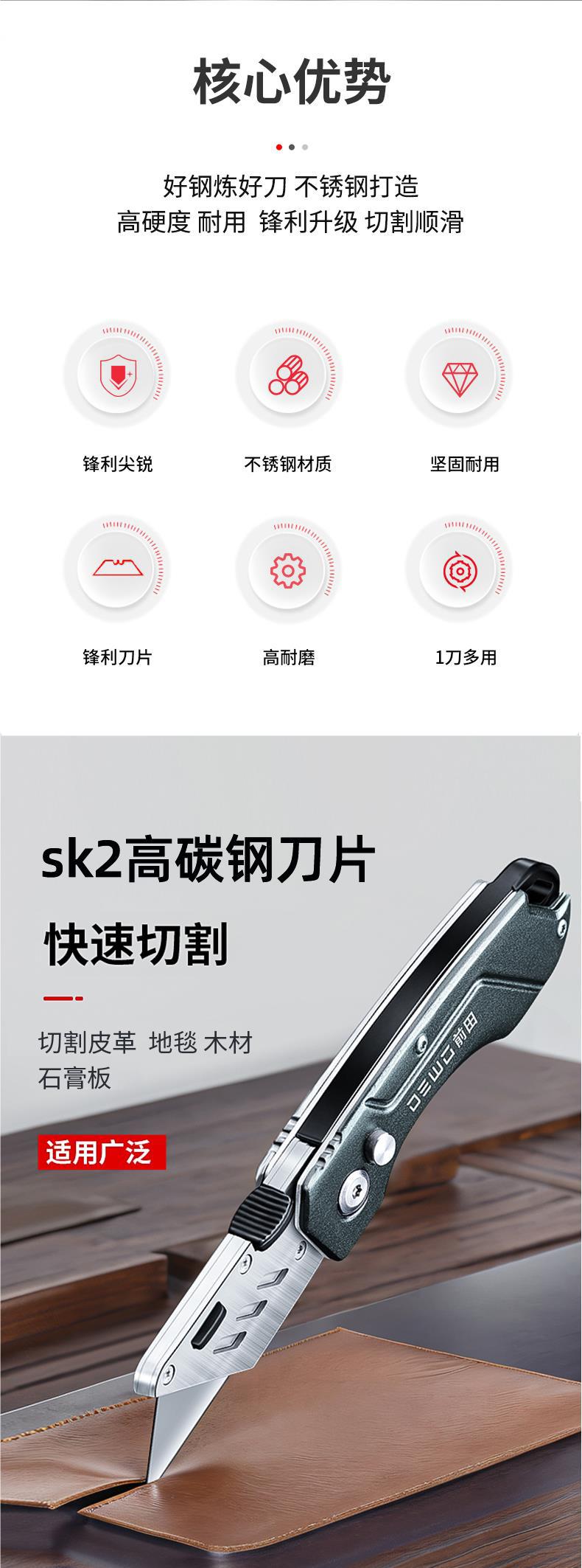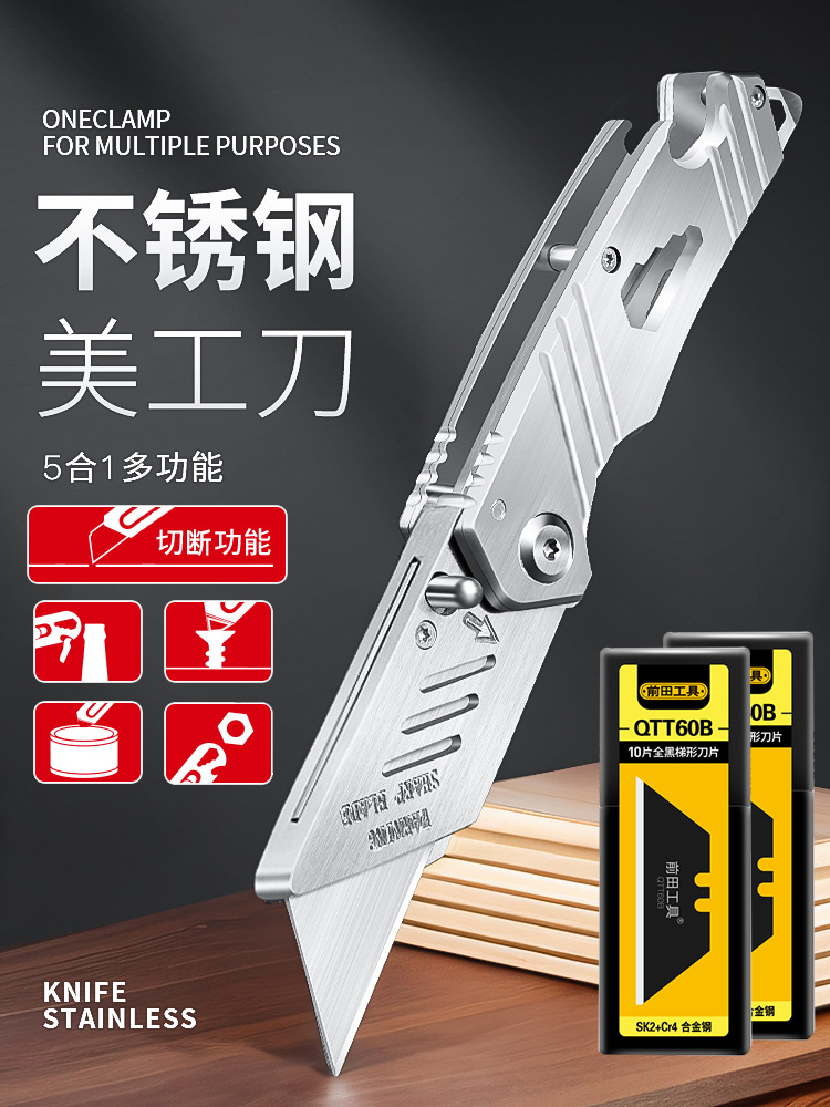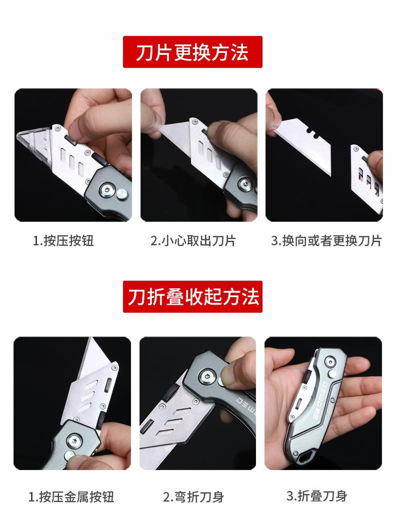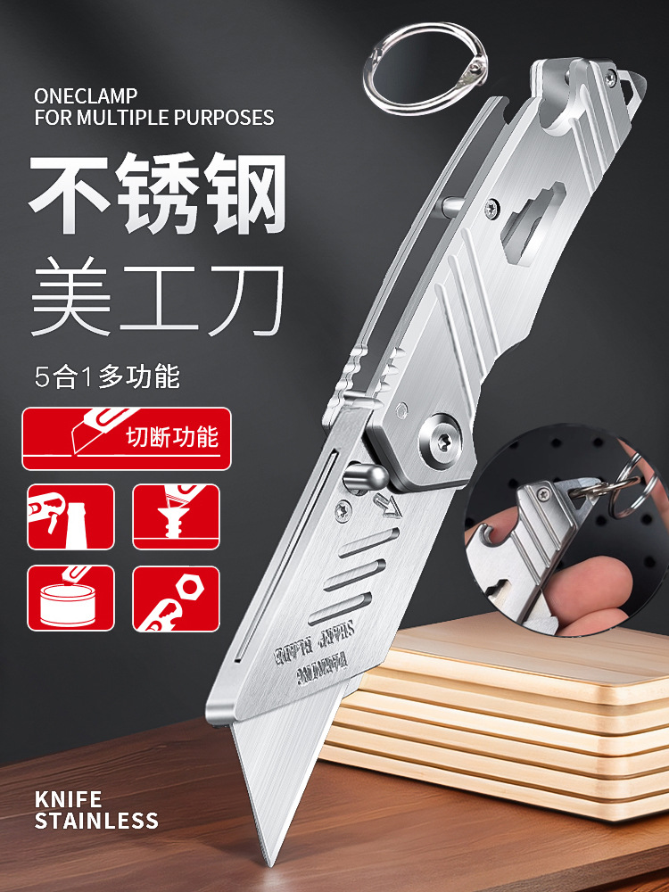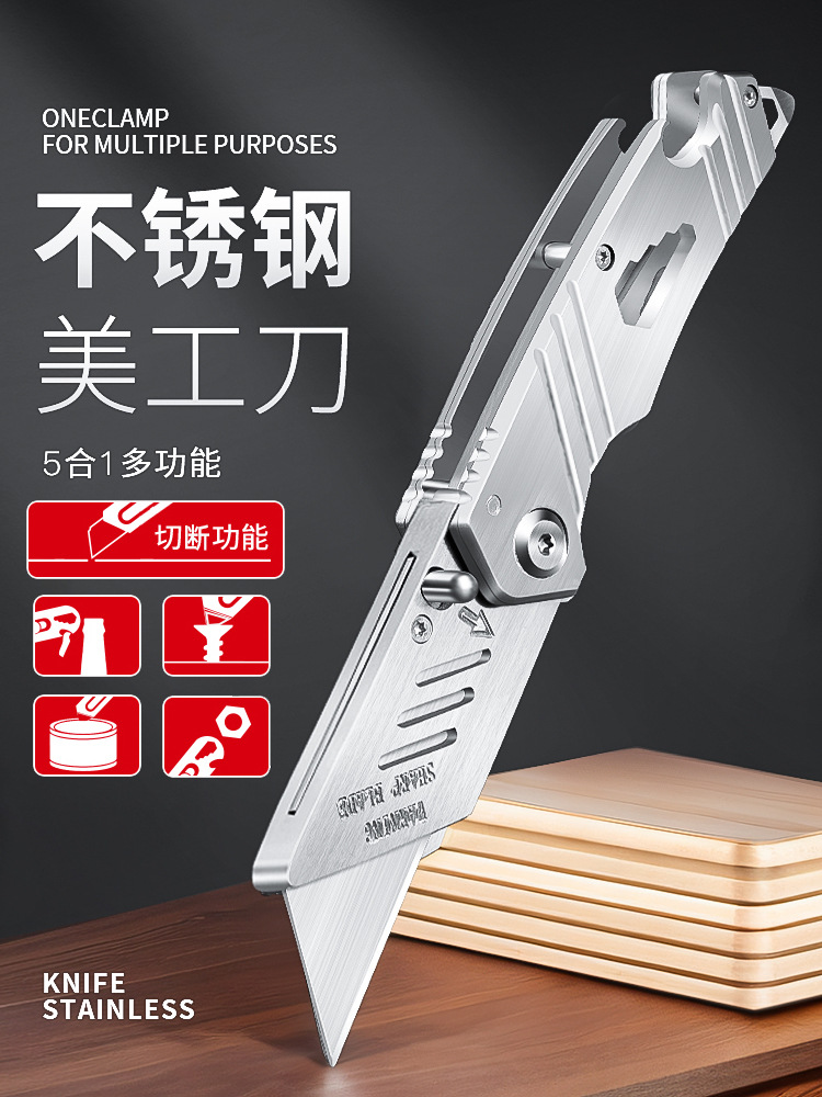 • 5-in-1 스테인리스 스틸 접이식 유틸리티 나이프 1개-60°다음-2.9cm-130mm