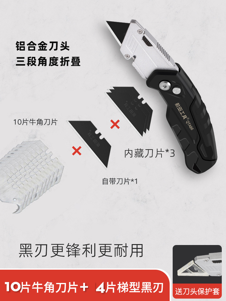 • 스테인리스 접이식 칼 1개 + 검정색 칼날 30개 -60°다음-2.9cm-130mm