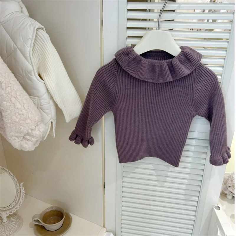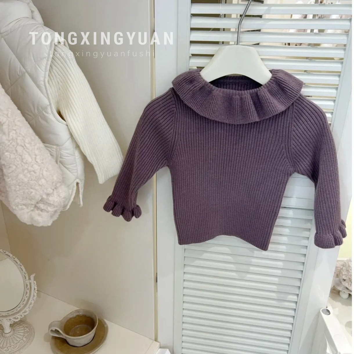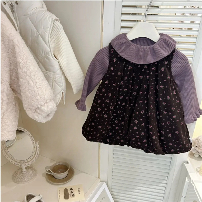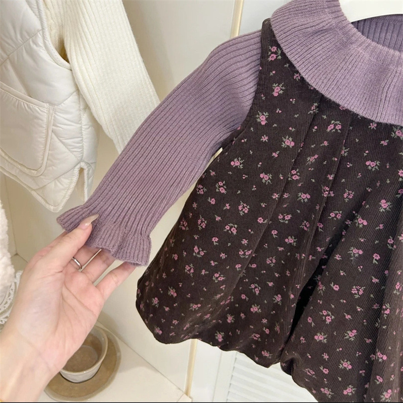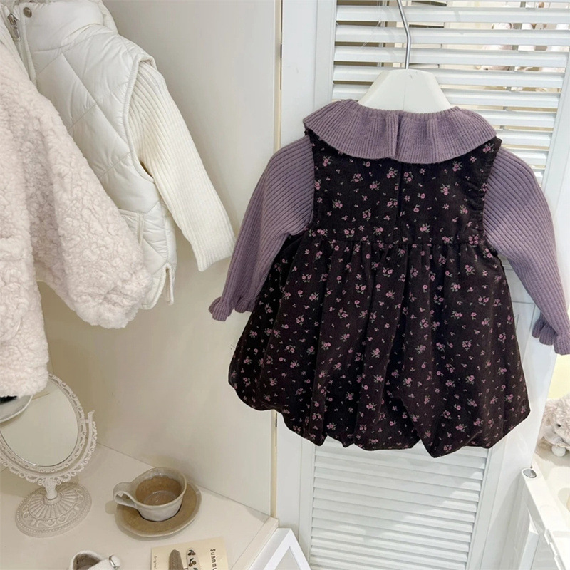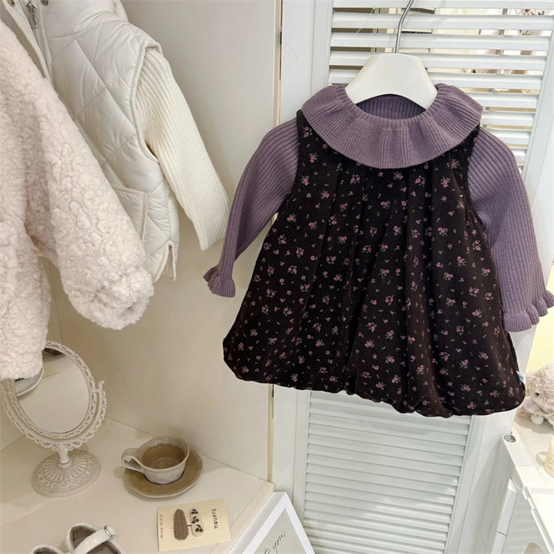 어린이 의류 소녀 가을과 겨울 새로운 보라색 연꽃 잎 스웨터 아기 서양식 꽃 조끼 스커트 투피스 세트스토어 가기