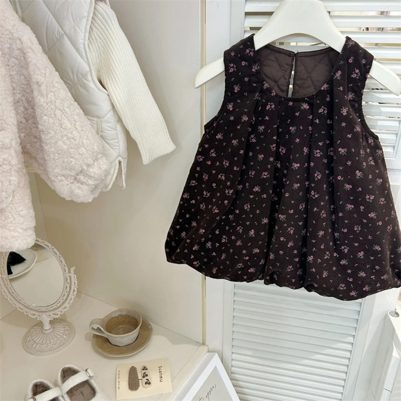 어린이 의류 소녀 가을과 겨울 새로운 보라색 연꽃 잎 스웨터 아기 서양식 꽃 조끼 스커트 투피스 세트