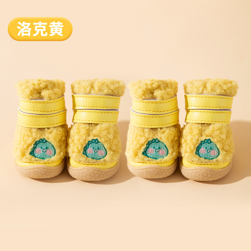 겨울 개 신발 만화 따뜻한 봉제 신발 테디 베어 겨울 외출 기모 미끄럼 방지 애완 동물 신발스토어 가기