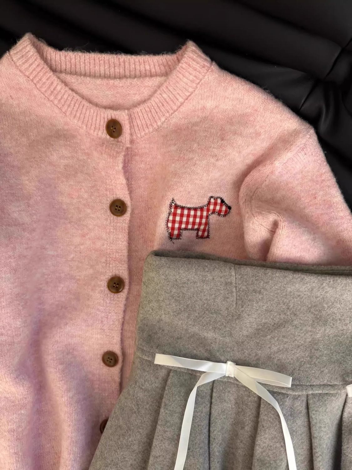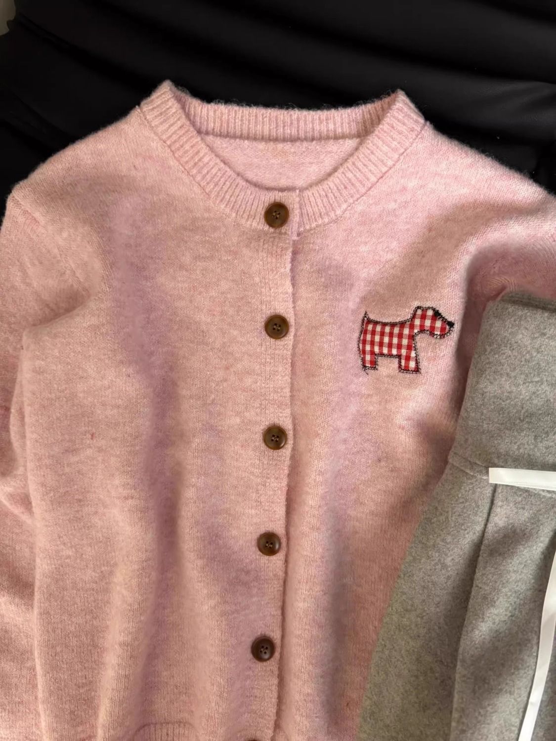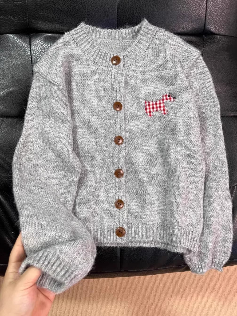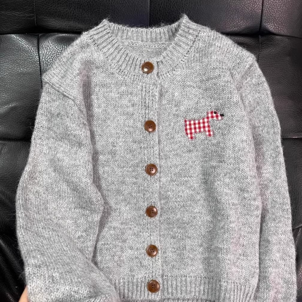 강아지 스티커 캔디 컬러 달콤한 니트 카디건 스웨터 여성의 2024 가을 새로운 올 매치 코트 쇼트 탑스토어 가기