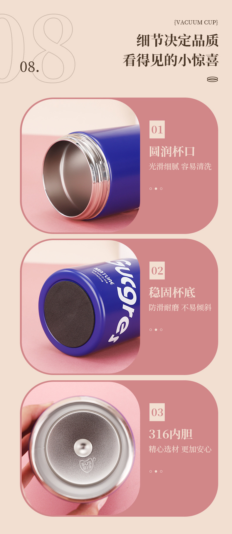 새로운 더블 음료 톤 컵 316 스테인레스 스틸 더블 레이어 진공 보온병 컵 대용량 야외 휴대용 흡입 컵