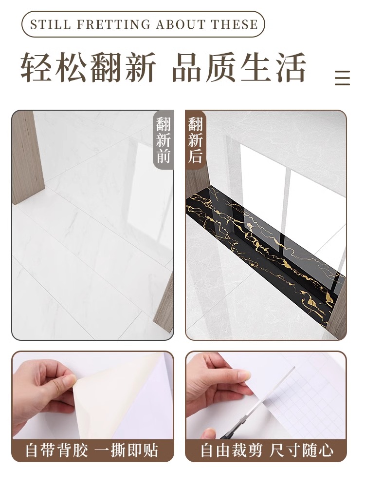 문턱 돌 스티커 돌 바닥 스티커 방수 내마모성 자체 접착 바닥 타일 스티커 바닥 덮개 못생긴 타일 변경스토어 가기