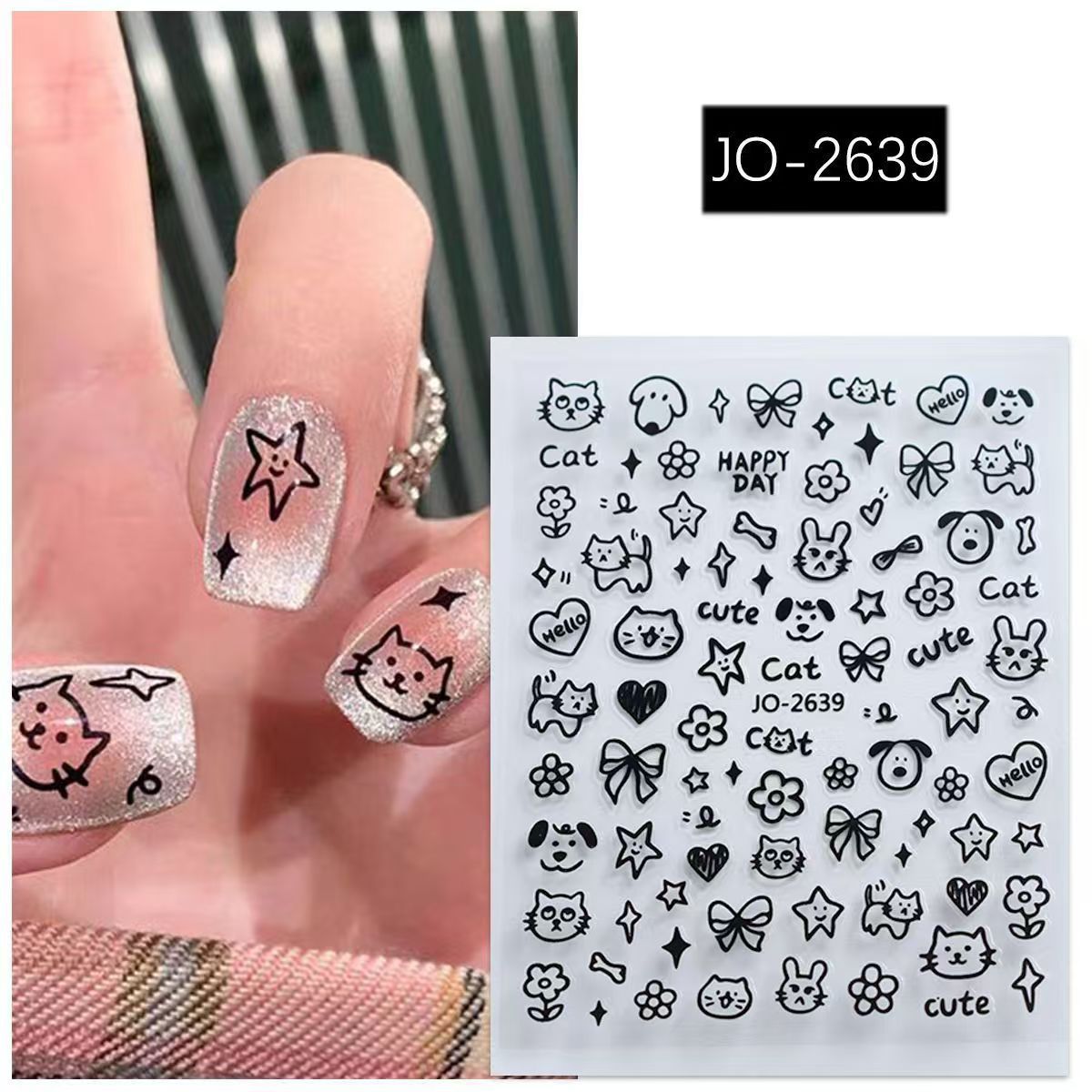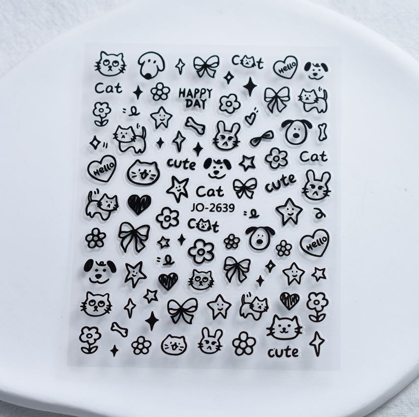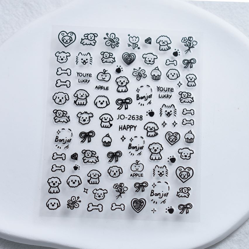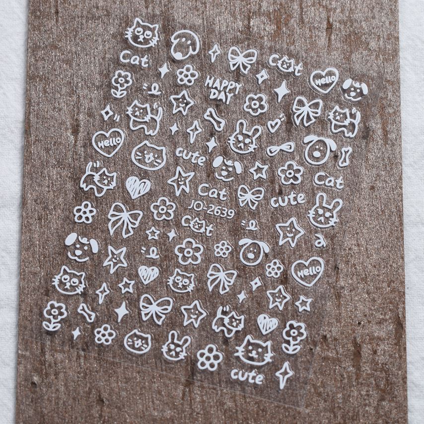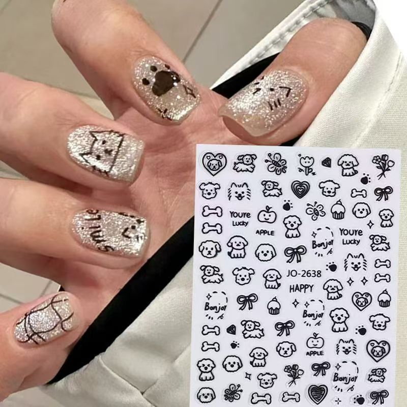 입체적인 릴리프 네일 아트 장식품 귀여운 흑백 고양이와 강아지 인스 스타일 만화 스티커 네일 스티커스토어 가기