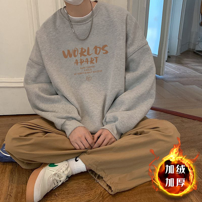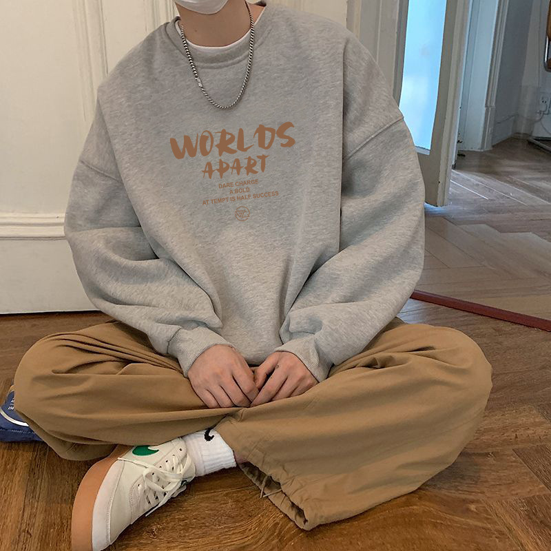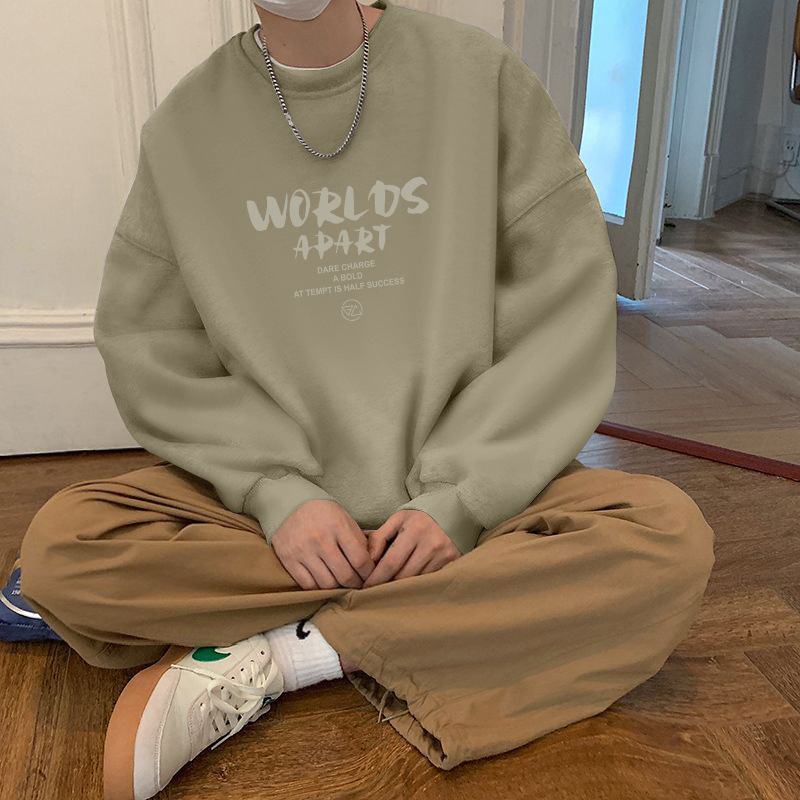 헤비 크루 넥 스웨터 남자 봄과 가을 하이 스트리트 트렌디 브랜드 헤비 루즈 재킷 학생 홍콩 스타일 올 매치 풀오버스토어 가기