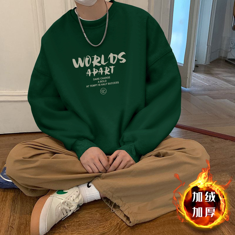• 다크그린 라운드넥 스웨트셔츠 플러스 벨벳스타일-558【GL】