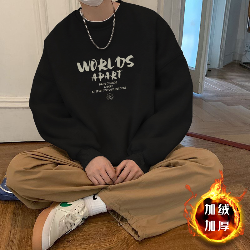 • 블랙 라운드넥 스웨트셔츠 플러스 벨벳스타일-558【GL】