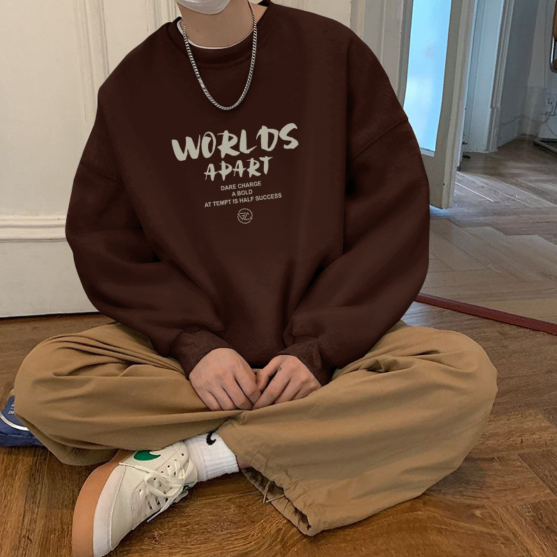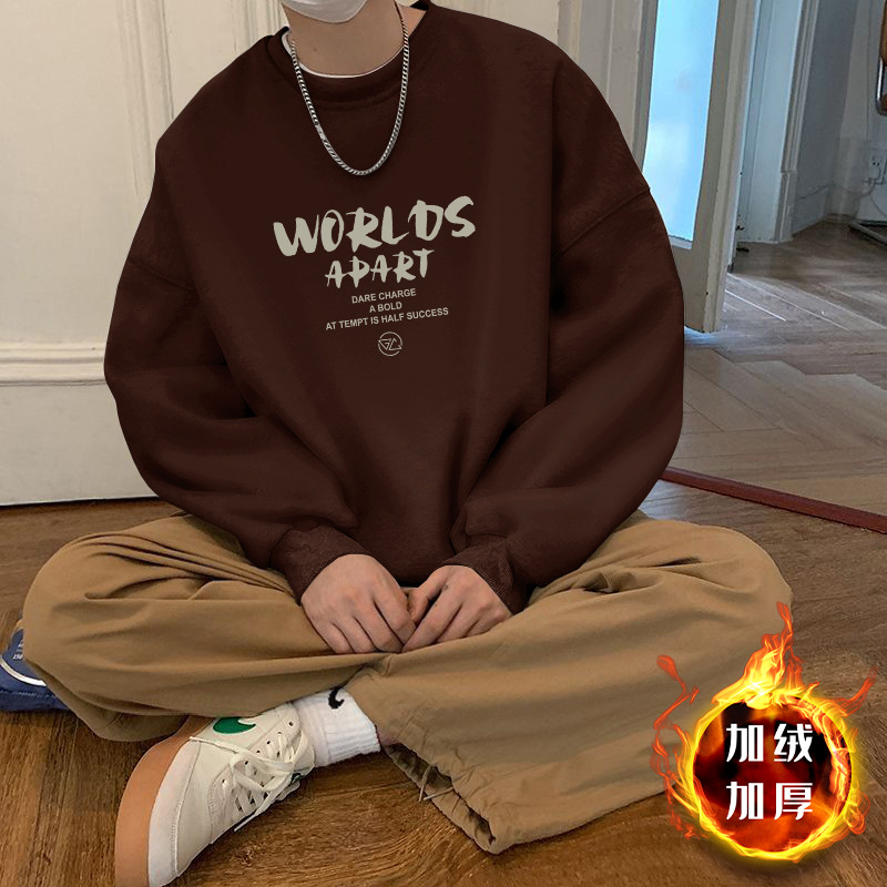 • 브라운 라운드넥 스웨트셔츠 플러스 벨벳스타일-558【GL】