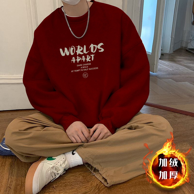 • 빅 레드 라운드넥 스웨트셔츠 플러스 플리스 스타일-558【GL】