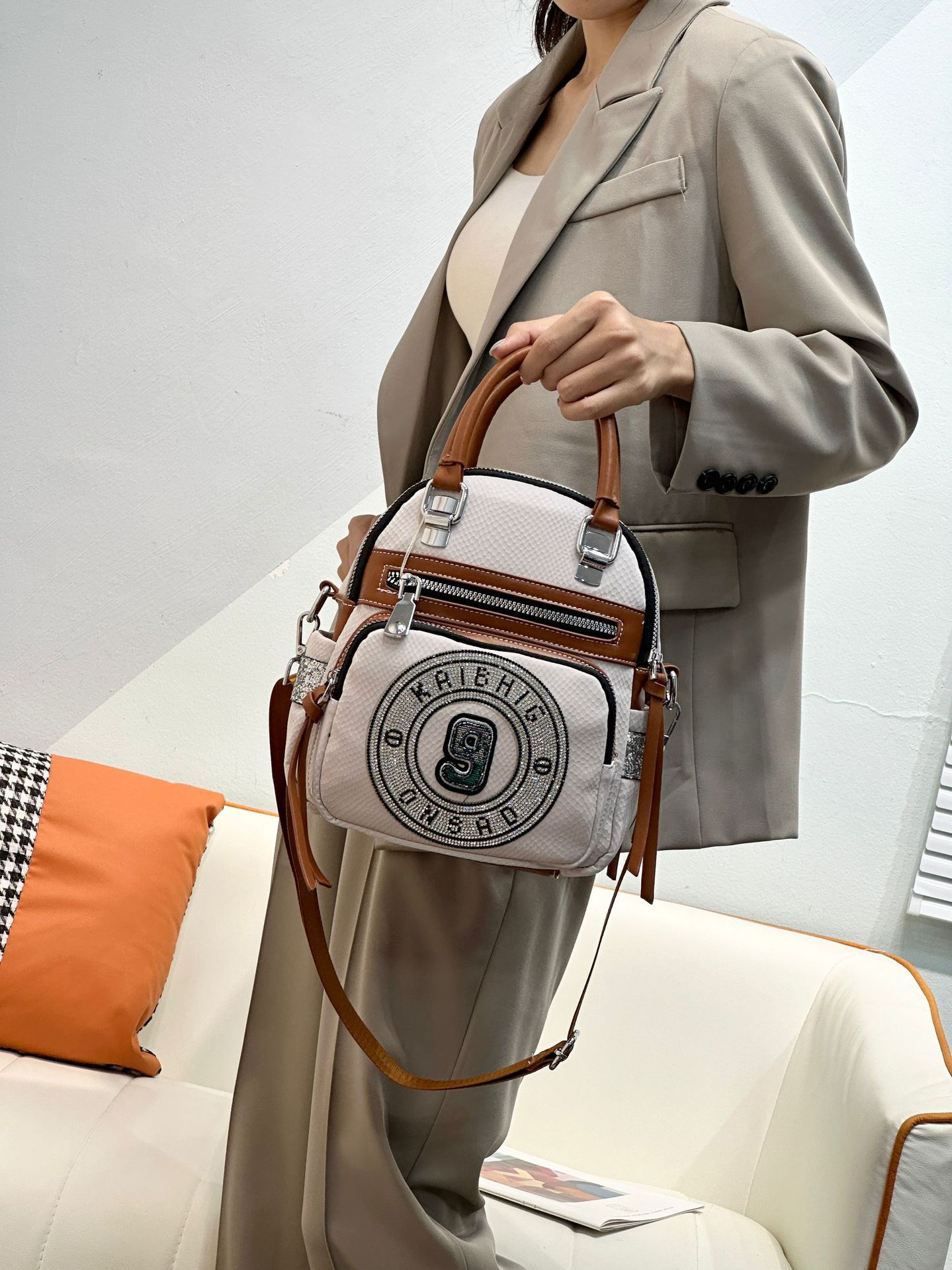 24 새로운 패션 올 매치 웨스턴 스타일 다이아몬드가 박힌 핸드백 패션 어깨 크로스 바디 여성 캐주얼 멀티 사용 트렌디 백팩스토어 가기