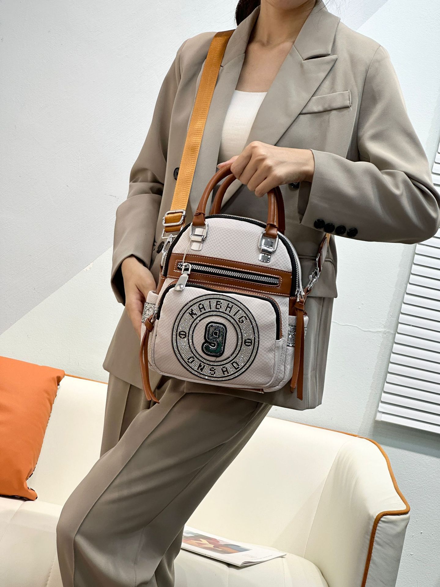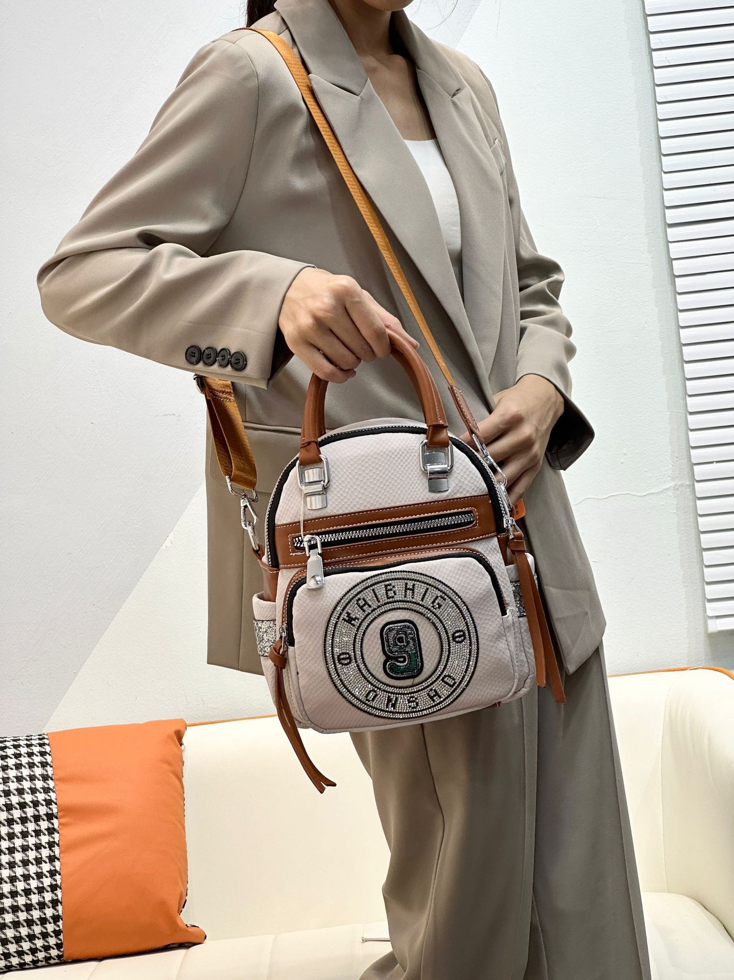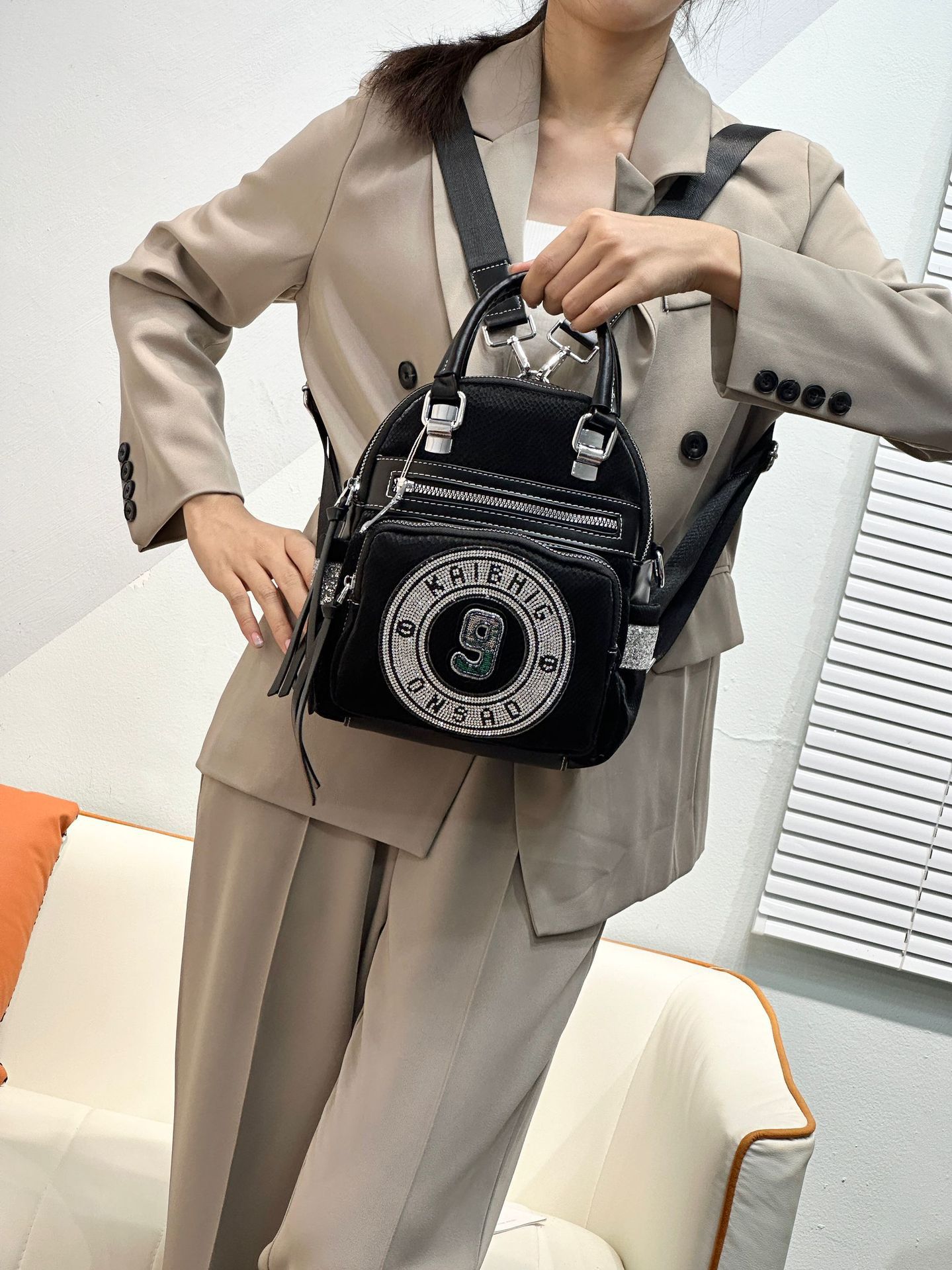 24 새로운 패션 올 매치 웨스턴 스타일 다이아몬드가 박힌 핸드백 패션 어깨 크로스 바디 여성 캐주얼 멀티 사용 트렌디 백팩