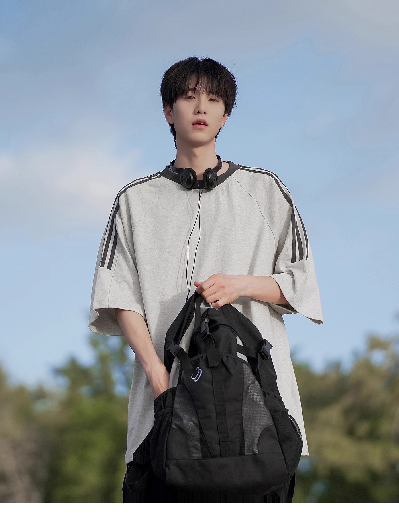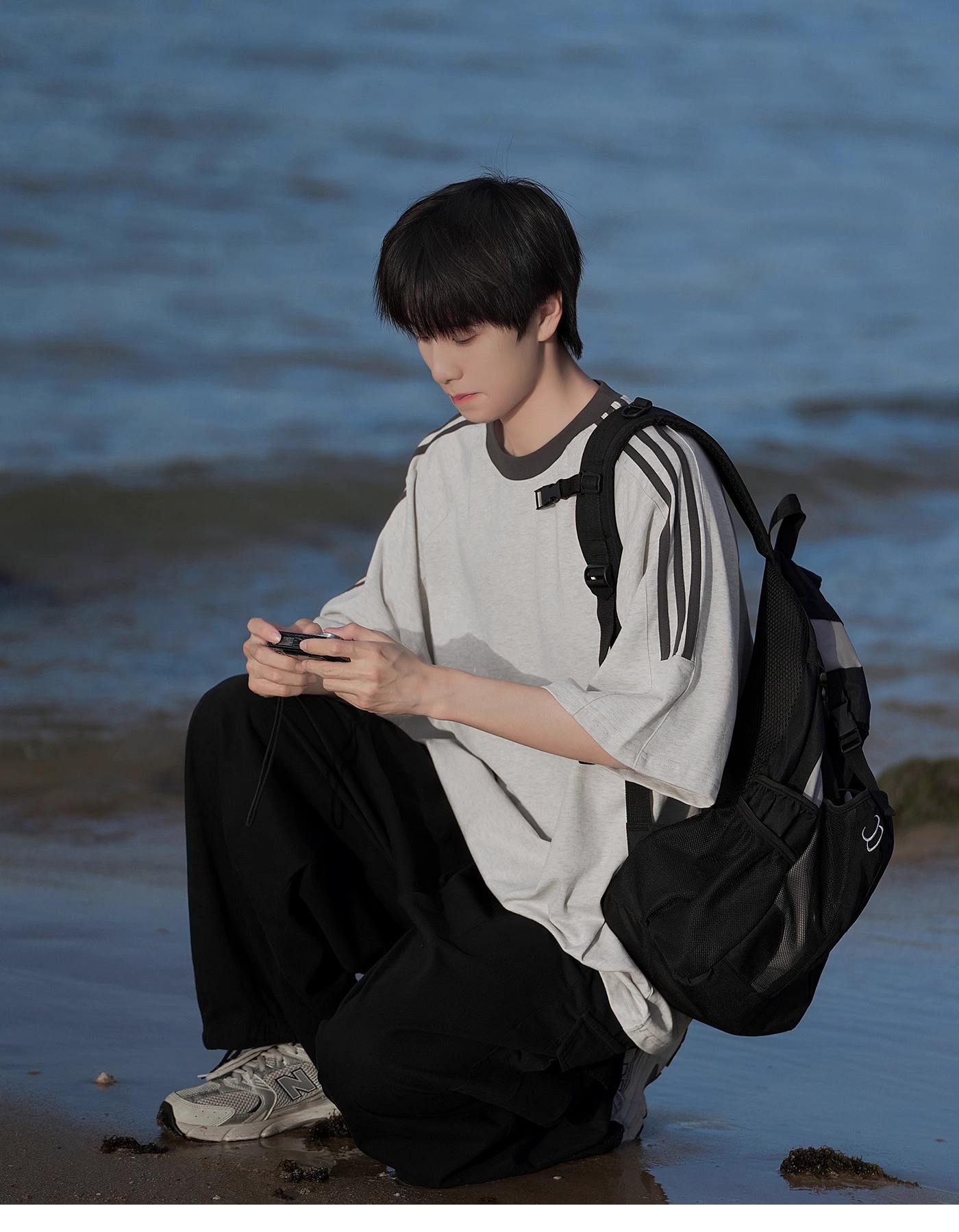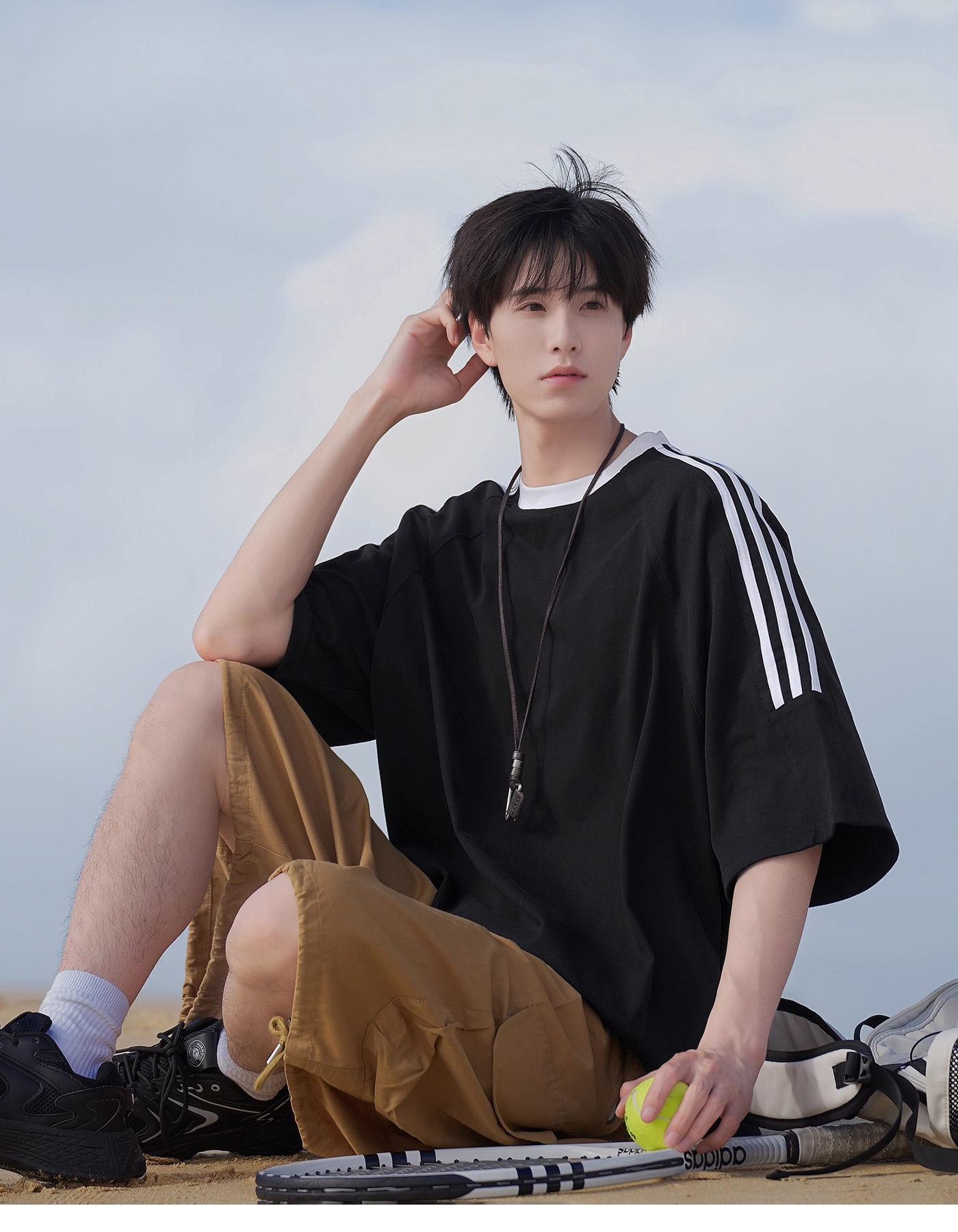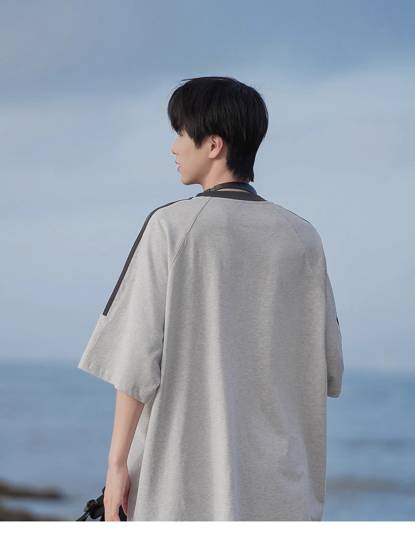 유럽과 미국 스타일의 면 트렌디한 복고풍 세 줄무늬 래글런 슬리브 티셔츠 남성과 여성을 위한 여름 반팔 저지 루즈 커플 스타일