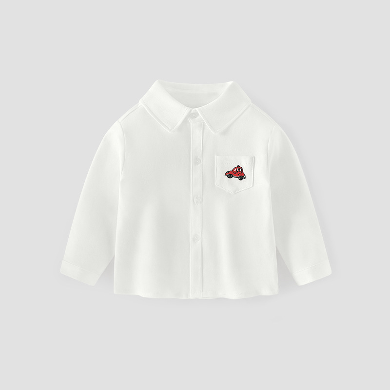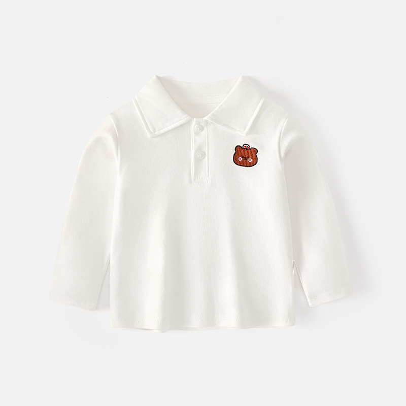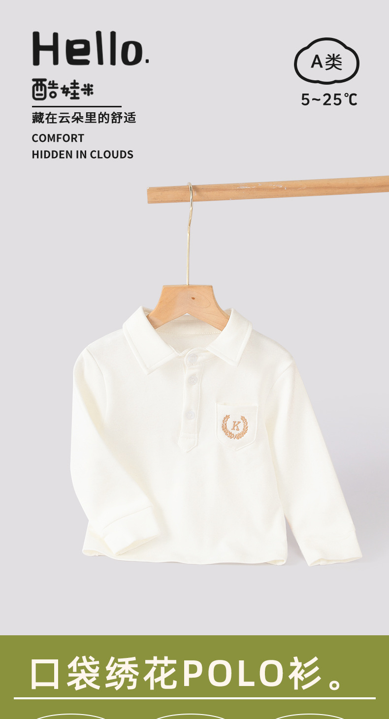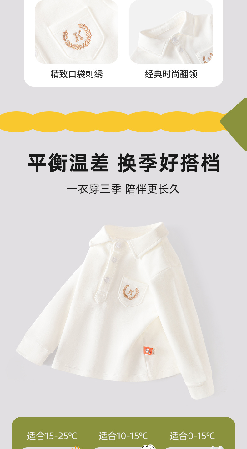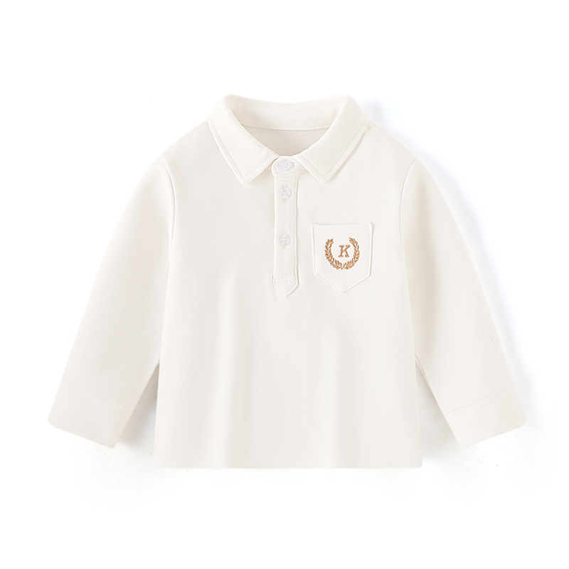 쿠와미 가을 뉴 보이즈 폴로 베이스 셔츠 아기 봄 포켓 자수 옷깃 긴 소매 셔츠스토어 가기