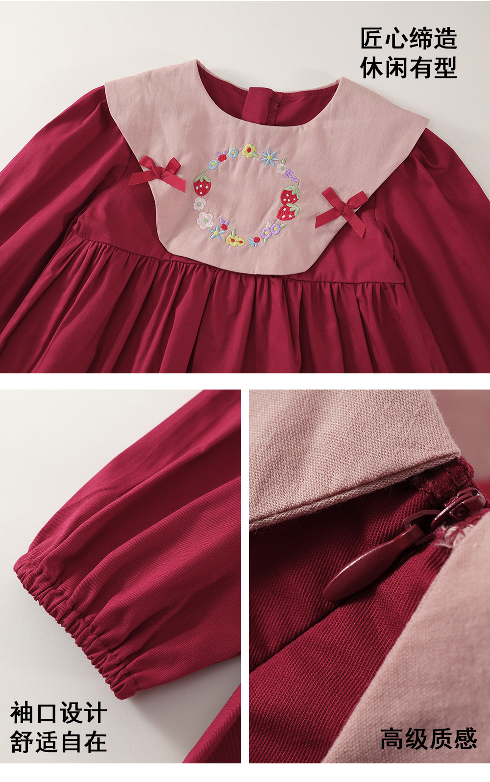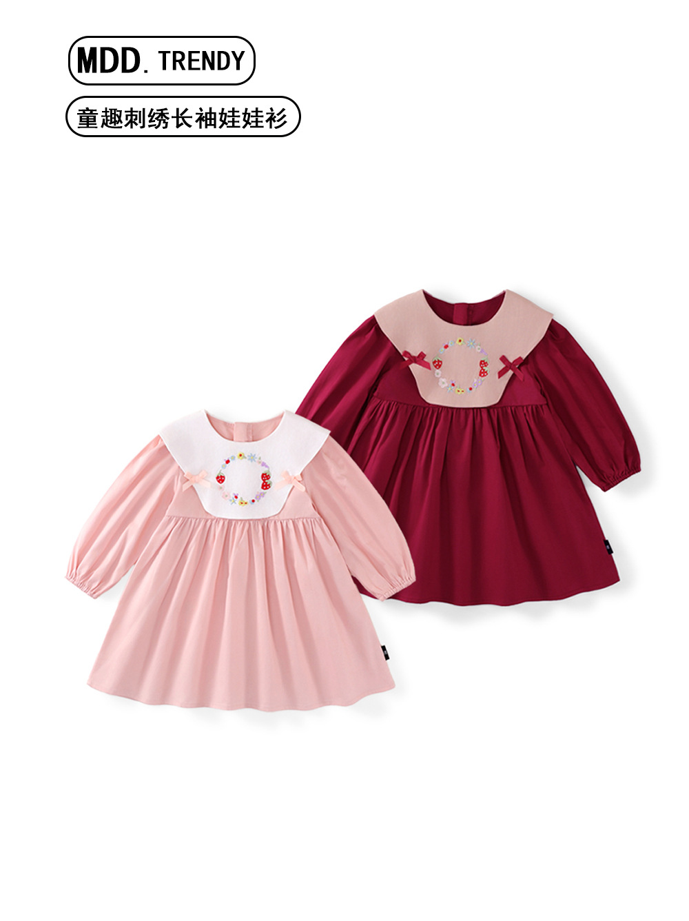 MDD 빈티지 자수 소녀의 원피스 2024 봄과 가을 인형 칼라 활 공주 스커트 폰테 스커트 어린이 치마