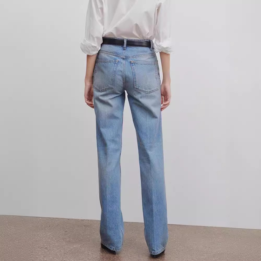 TH~ ROW 여성용 청바지 2025 봄/가을 신상 드레이프 하이웨이스트 연한색 루즈핏 슬림핏 스트레이트 롱팬츠